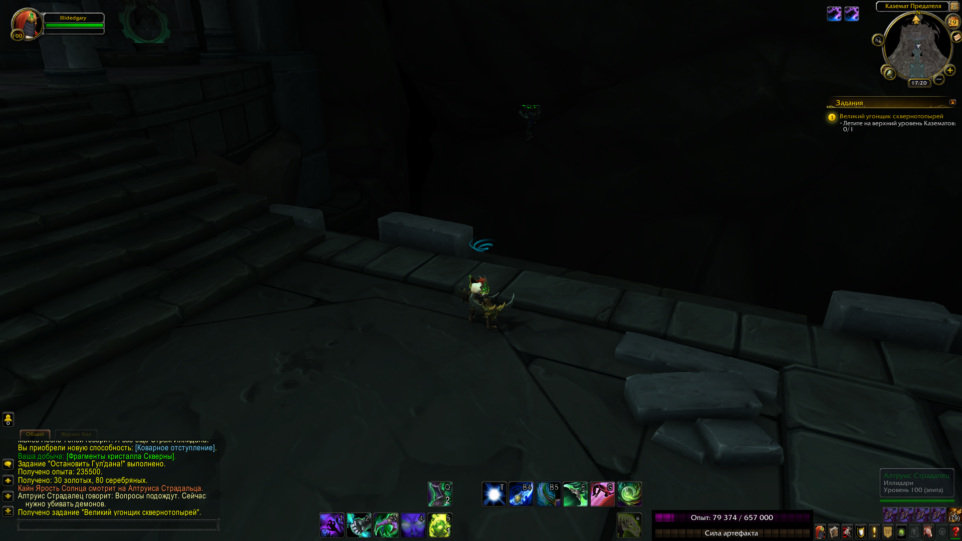 После выполнения квеста Остановить Гул'дана! На обратном пути нпс идут по мосту и Алтруис бежит на право, по диагонали, по воздуху. |