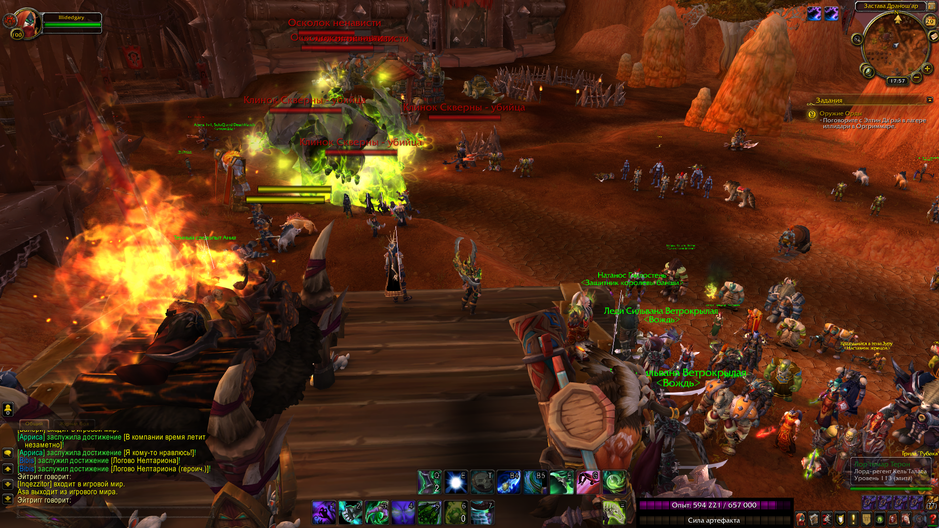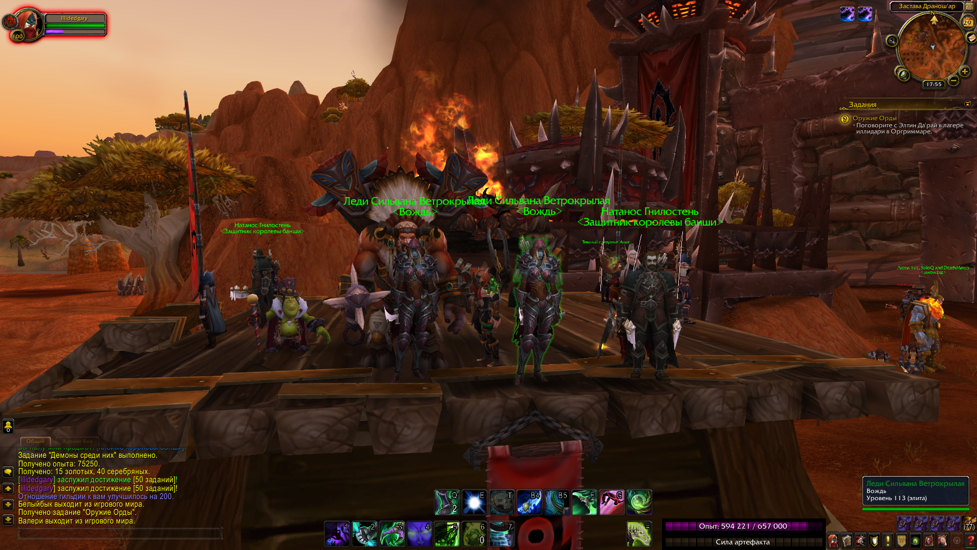 | Description | После квеста обнаружить демонов призрачным зрением и убить 12 демонов, остается 2 Сильваны и постоянное появление демонов перед Оргримаром. Скрины прилагаю. | ||||