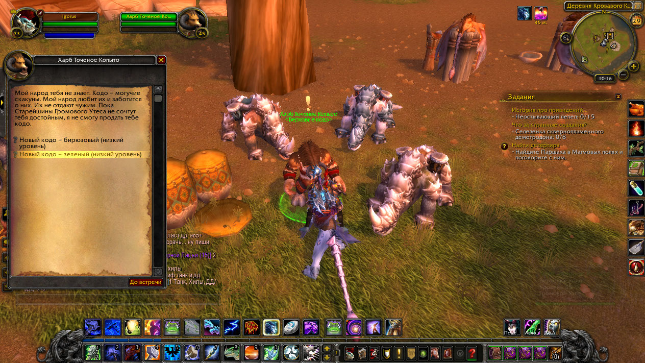 | Description | У https://ru.wowhead.com/npc=3685/%D1%85%D0%B0%D1%80%D0%B1-%D1%82%D0%BE%D1%87%D0%B5%D0%BD%D0%BE%D0%B5-%D0%BA%D0%BE%D0%BF%D1%8B%D1%82%D0%BE два квеста, которых нет в игре 1. https://ru.wowhead.com/quest=7662/%D0%BD%D0%BE%D0%B2%D1%8B%D0%B9-%D0%BA%D0%BE%D0%B4%D0%BE-%D0%B1%D0%B8%D1%80%D1%8E%D0%B7%D0%BE%D0%B2%D1%8B%D0%B9 2. https://ru.wowhead.com/quest=7663/%D0%BD%D0%BE%D0%B2%D1%8B%D0%B9-%D0%BA%D0%BE%D0%B4%D0%BE-%D0%B7%D0%B5%D0%BB%D0%B5%D0%BD%D1%8B%D0%B9 + нет окна торговли покупки маунтов | ||||