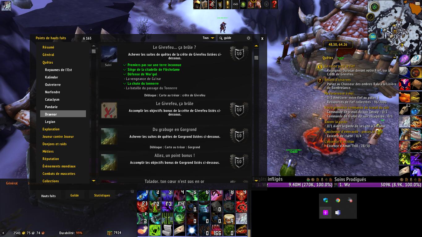 | Steps To Reproduce | 1 - Do the draenor introductory quests 2 - Do the quests offered by the fief and do the quests for the meta achievement (https://fr.wowhead.com/storyline/first-steps-on-an-unknown-land-1) 3 - Complete the quest for: (https://fr.wowhead.com/storyline/si%C3%A8ge-de-la-citadelle-de-fl%C3%A8chelame-18) 4 - do the quest suite (https://fr.wowhead.com/storyline/d%C3%A9fense-de-wor-gol-19) 5 - complete the quest (https://fr.wowhead.com/storyline/la-vengeance-de-ga-nar-20) 6 - before returning the quest https://fr.wowhead.com/quest=32796/en-route-pour-le-fief raise the fief to level 2 | ||||