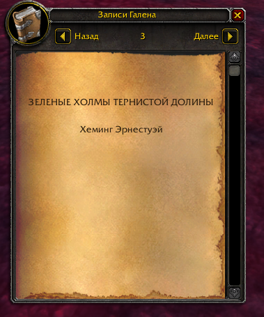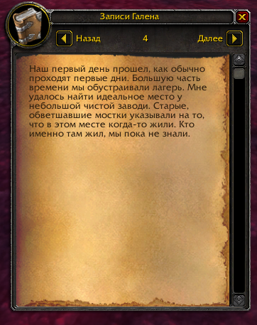 | Additional Information | Квест: https://ru.wowhead.com/quest=9706/дневник-галена-судьба-воздаятеля-саруана Итем: https://ru.wowhead.com/item=24237/записи-галена | ||||