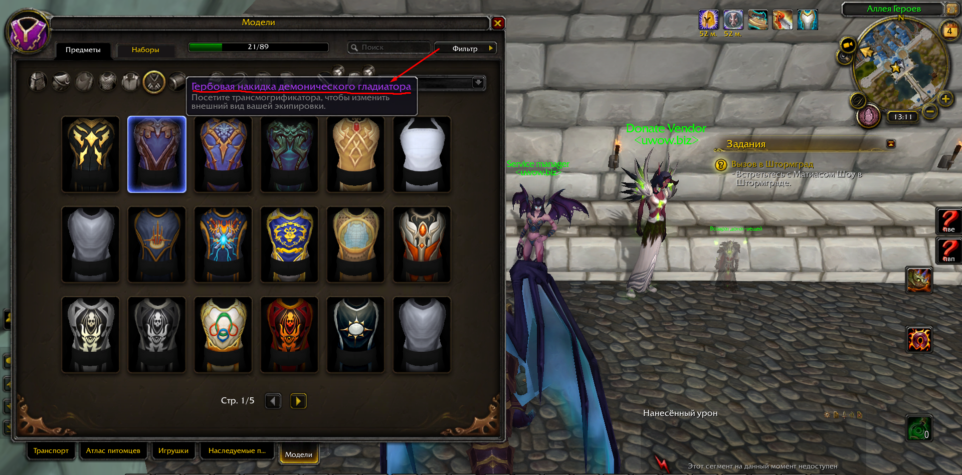 я скорее неправильно объяснил, накидка Демонического гладиатора, не соотвествует тому, что есть в игре (скрин который я прикрепил с офы, на нём видно накидку за 7й сезон легиона, в этом сообщении я прикреплю накидку которая выдавалась на uwow.biz за 7й сезон) |