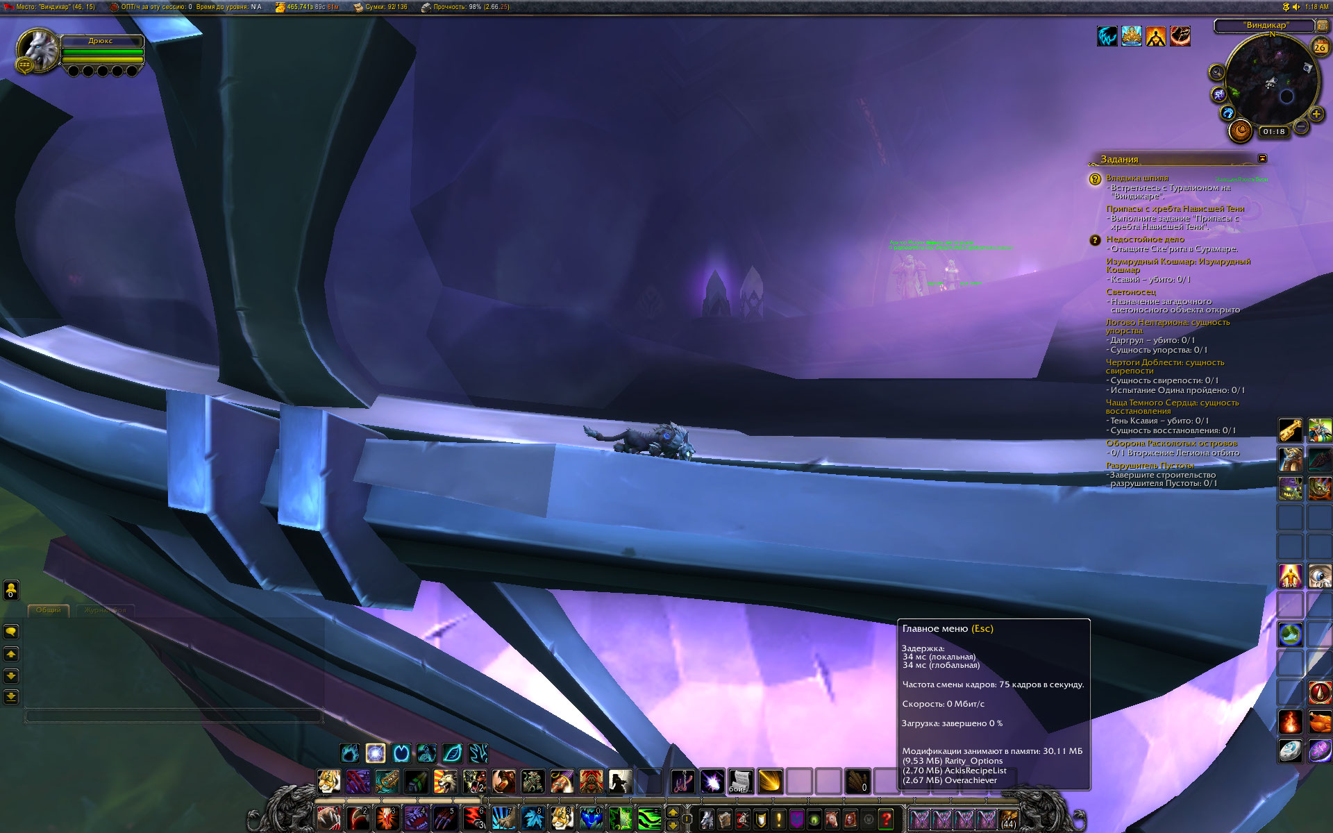 Вот видео с одного из моих чаров. https://youtu.be/o9XdmDecdRU И это еще более-менее, если часок побегать, побить мобов - колбасить будет секунд пять на каждом переходе на любой Виндикар. Почти уверен, что глюк связан с низкой производительностью моего компьютера и недостаточным объемом памяти. ОС и клиент - 32бит. Замечено, что в локациях Легиона картинка прогружается заметно медленнее чем в локациях классики, например. На выбранном чаре разве что Аргус не убит в АПТ, все остальное сделано. В начале видео все видно. надеюсь, ТС сможет разобраться и записать аналогичное видео. |