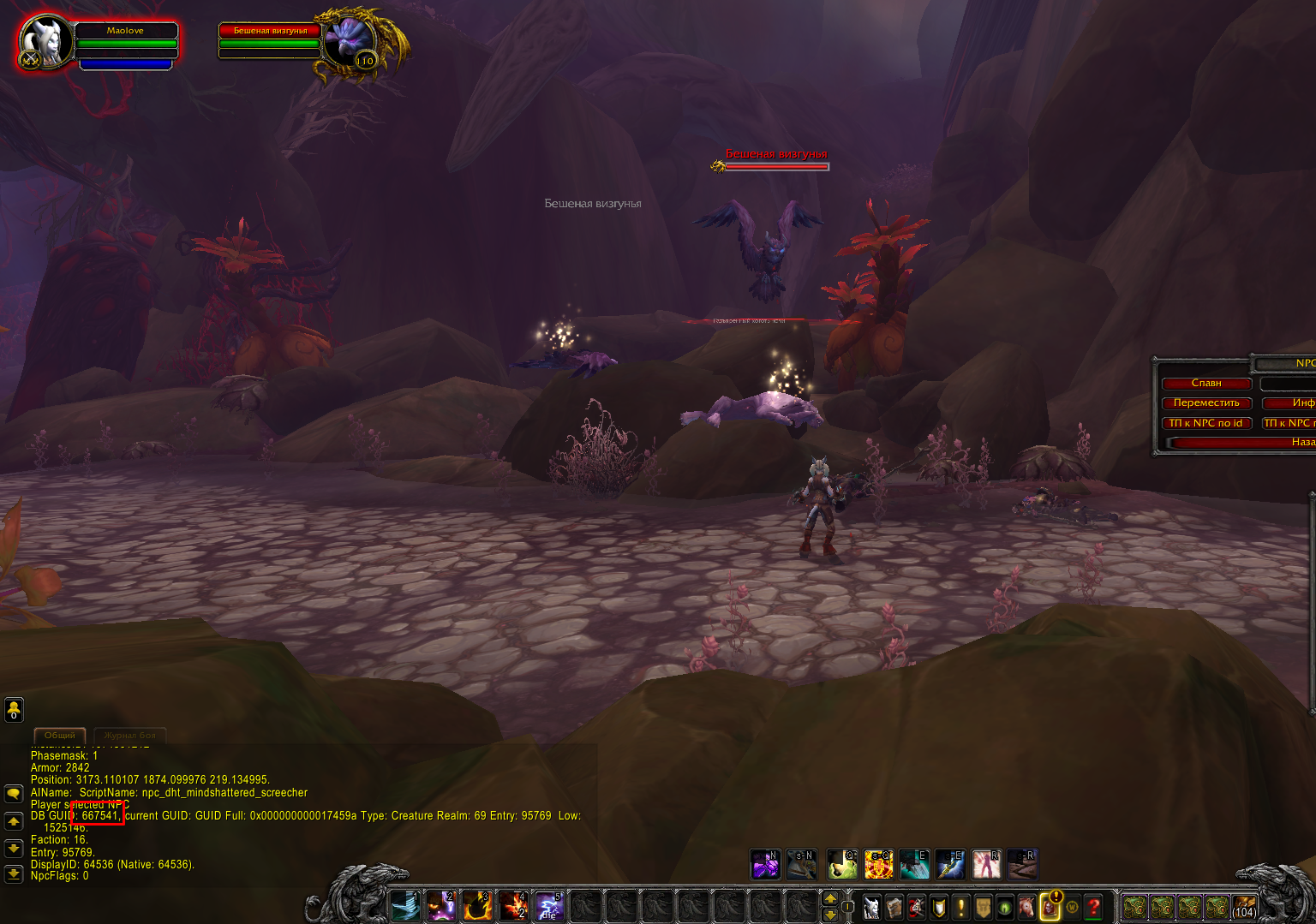 | Description | 1) в зоне - https://ru.wowhead.com/darkheart-thicket 2)моб - https://ru.wowhead.com/npc=95769/%D0%B1%D0%B5%D1%88%D0%B5%D0%BD%D0%B0%D1%8F-%D0%B2%D0%B8%D0%B7%D0%B3%D1%83%D0%BD%D1%8C%D1%8F GUID 667541 (внутри любой сложности об/гер/миф) 3) точка спавна моба "внутри" текстуры камня 4) приподнять спавн моба вверх на несколько пунктов координат. | ||||