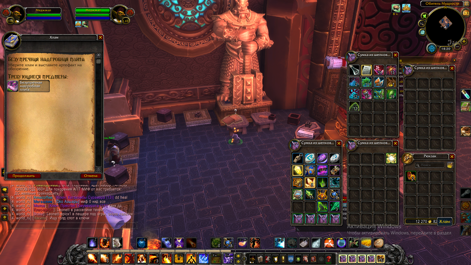 | Description | Занимаясь археологией, выпало 2 безупречный артефакта, которые начинают квест, прилететь в обитель Пандарена ЧО и выставить сам артефакт. После активации квеста, сам артефакт который выдавал квест, пропадает из инвентаря, (Обычно если что-то пропадает потом появляется на почте, но тут не так) задание горит и требует этот квестовый артефакт. |
