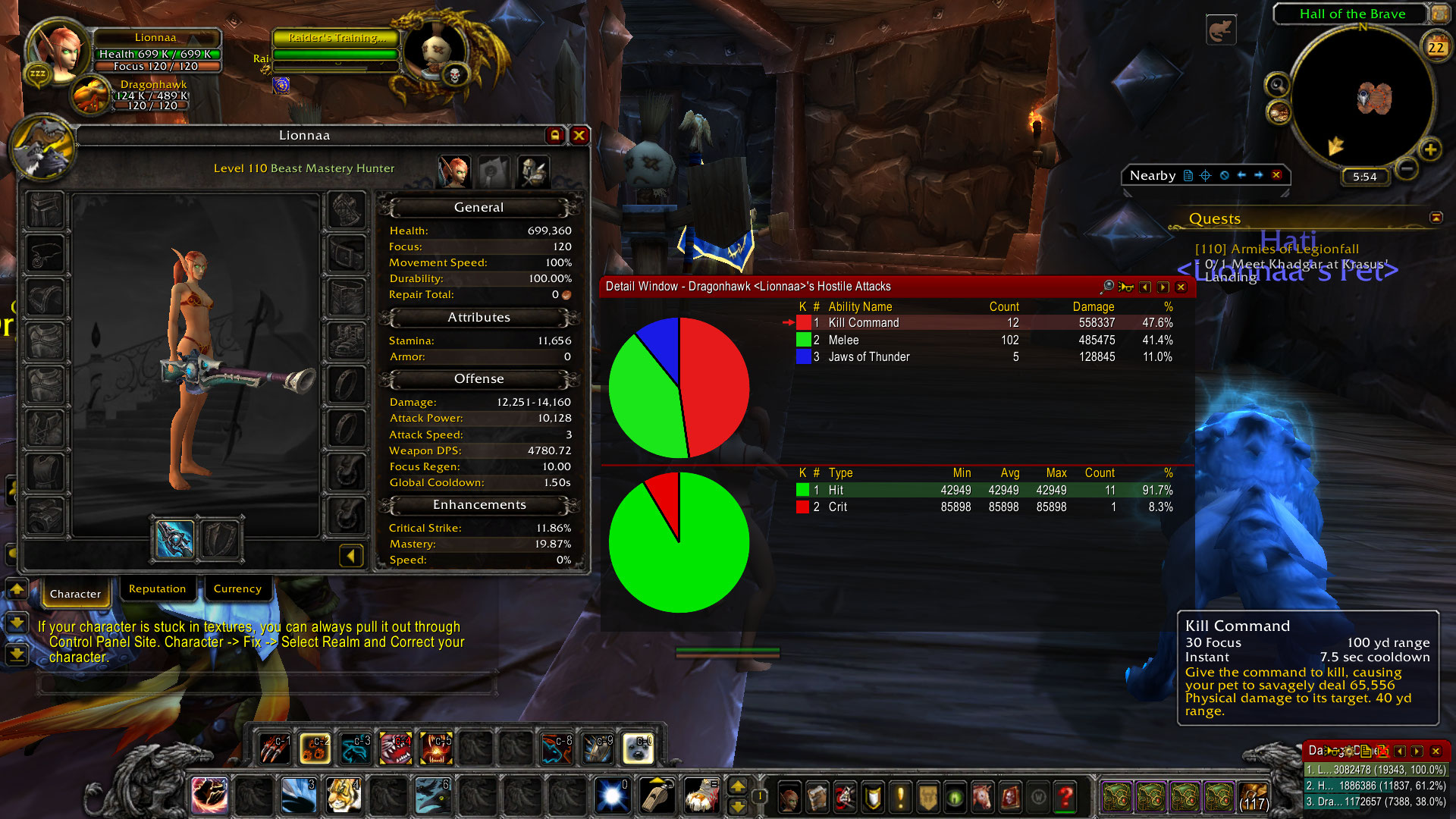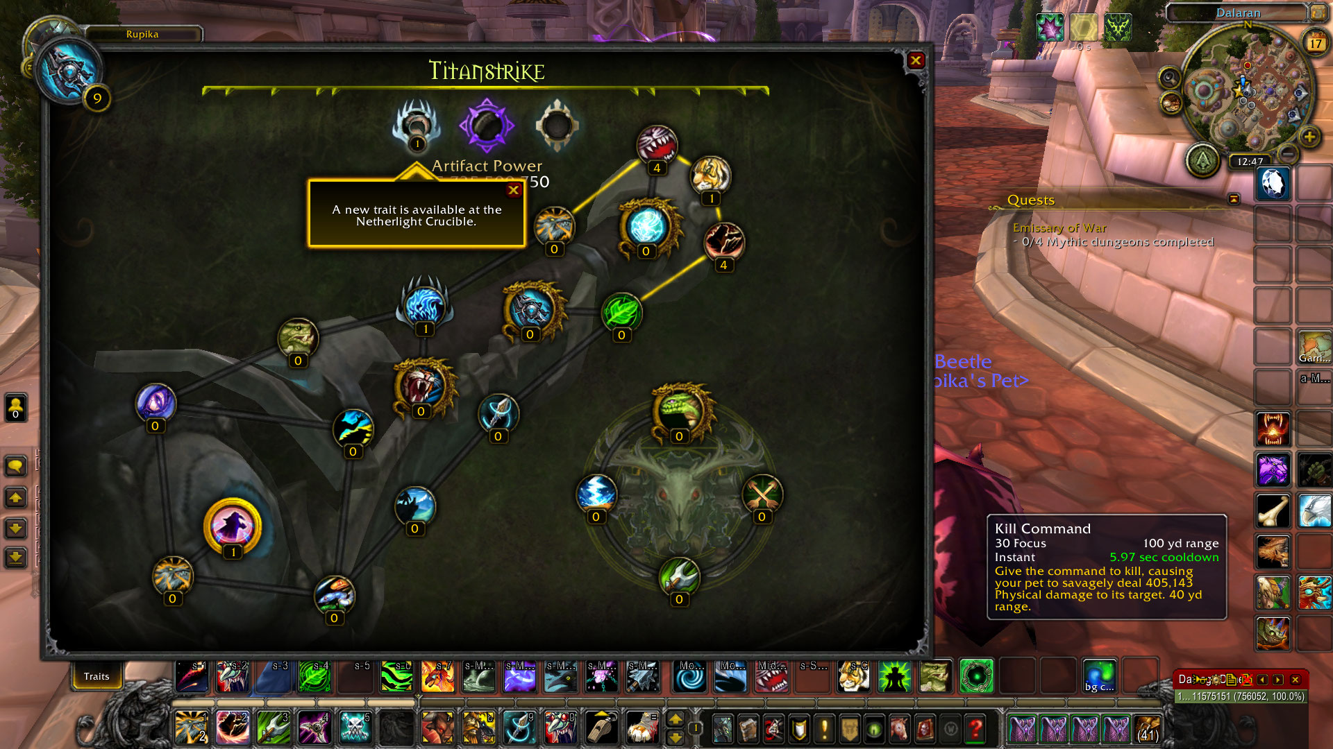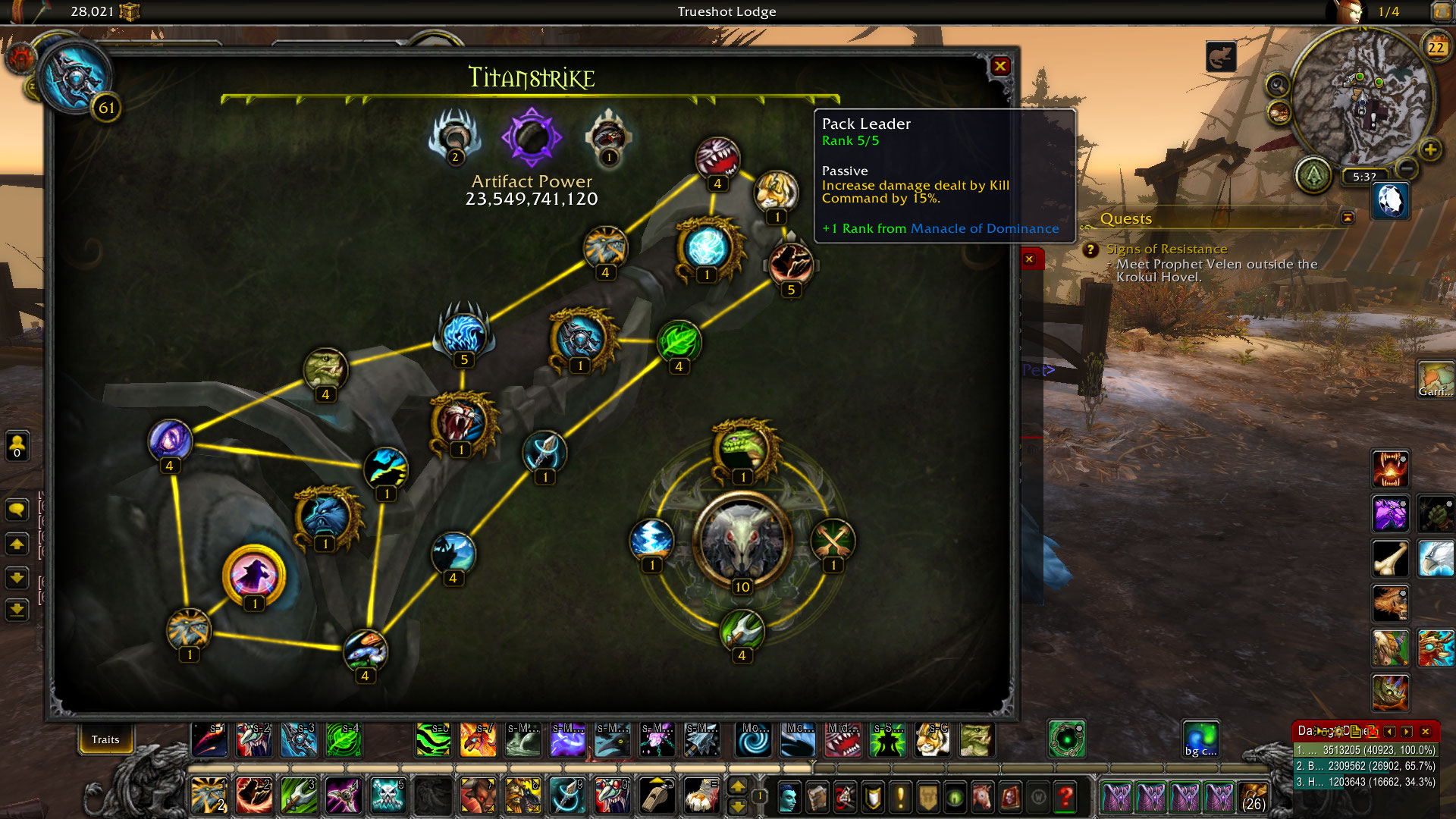 | Description | The skill https://www.wowhead.com/spell=197080/pack-leader from beastmastery https://www.wowhead.com/item=128861/titanstrike?bonus=0 doesn't increase the damage from https://www.wowhead.com/spell=259489/kill-command. At 0/4 https://www.wowhead.com/spell=197080/pack-leader the https://www.wowhead.com/spell=259489/kill-command does 405143 damage At 2/4 https://www.wowhead.com/spell=197080/pack-leader the https://www.wowhead.com/spell=259489/kill-command does 405143 damage (should increase 6%) At 4/4 https://www.wowhead.com/spell=197080/pack-leader the https://www.wowhead.com/spell=259489/kill-command does 405143 damage (should increase 12%) | ||||