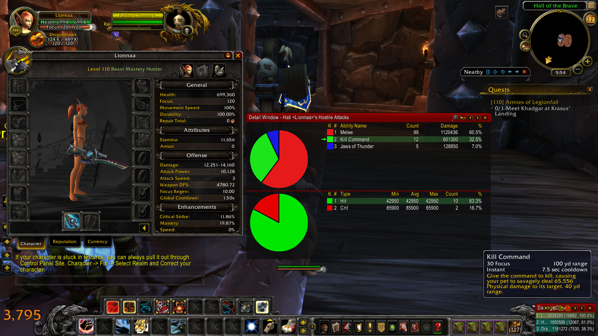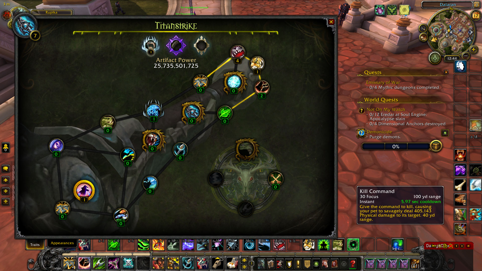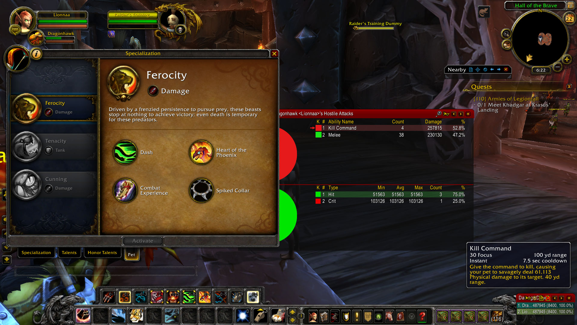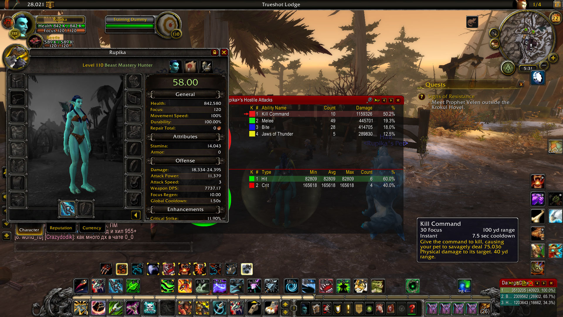 | Description | The skill https://www.wowhead.com/spell=197080/pack-leader from beastmastery https://www.wowhead.com/item=128861/titanstrike?bonus=0 doesn't increase the damage from https://www.wowhead.com/spell=259489/kill-command. At 0/4 https://www.wowhead.com/spell=197080/pack-leader the https://www.wowhead.com/spell=259489/kill-command does 405143 damage At 2/4 https://www.wowhead.com/spell=197080/pack-leader the https://www.wowhead.com/spell=259489/kill-command does 405143 damage (should increase 6%) At 4/4 https://www.wowhead.com/spell=197080/pack-leader the https://www.wowhead.com/spell=259489/kill-command does 405143 damage (should increase 12%) | ||||
