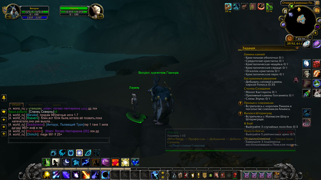 | Description | При добыче пласта сланца скверны появилась Лирель. Задание на третий уровень рецепта не выдает. Второй уровень рецепта в наличии. Ниже скрины появления самой Лирель (без квеста), журнала задания и наличия второго уровня рецепта. Персонаж Вальриг. | ||||