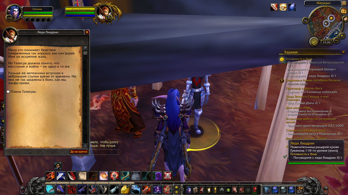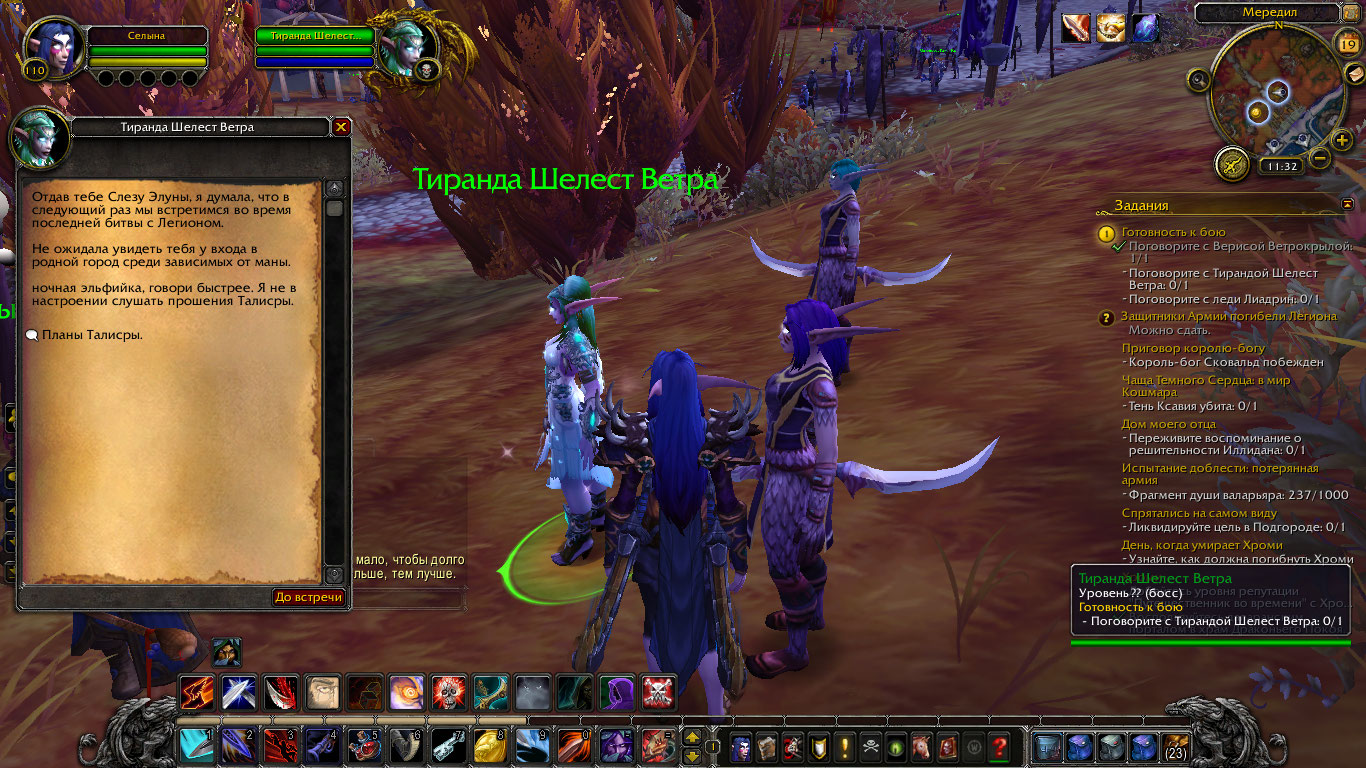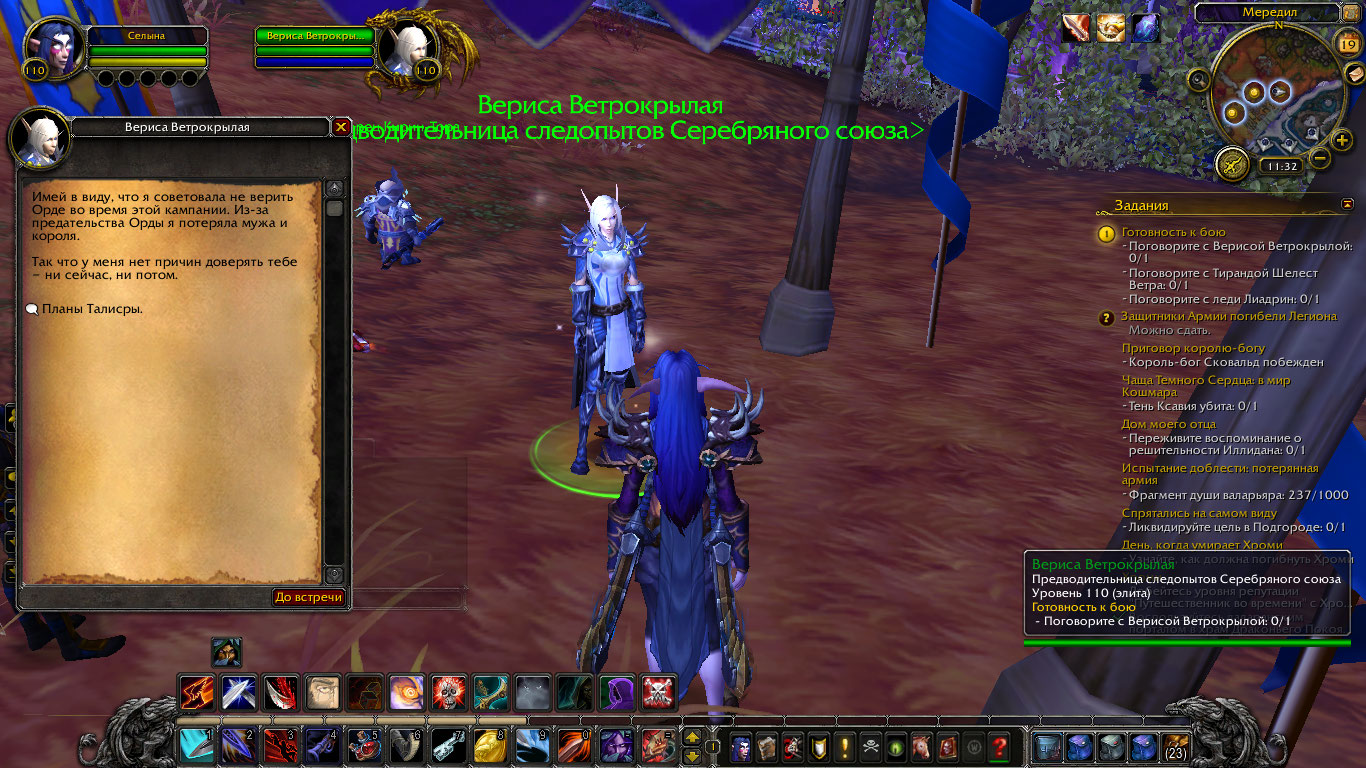 | Steps To Reproduce | Після того як беру завдання потрібно поговорити з Верисой, Тирандою і Лиадрин і дати їм плани наступу після розмовів і відання приказов защитує толька размову з Верісою і йде діалог від неї а при розмові з Тирандою і Лиадрин при нажатті на відати прикази викидає з діалогу і його не зараховує і нічого не відбувається. | ||||