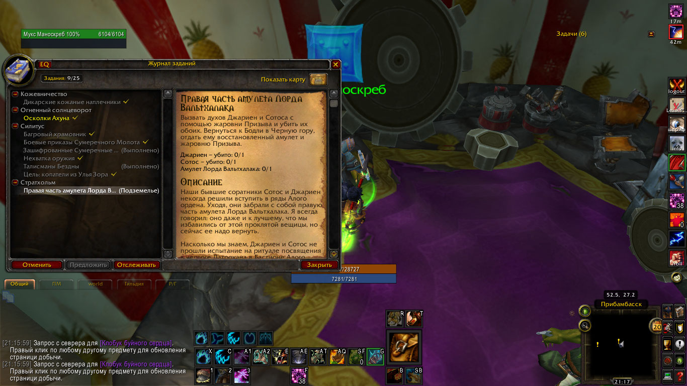 | Description | https://ru.wowhead.com/item=22115/ при утрате не восстанавливается у https://ru.wowhead.com/npc=16014/. Итем необходим для выполнения цепочки квестов на пререйд классик сет. | ||||