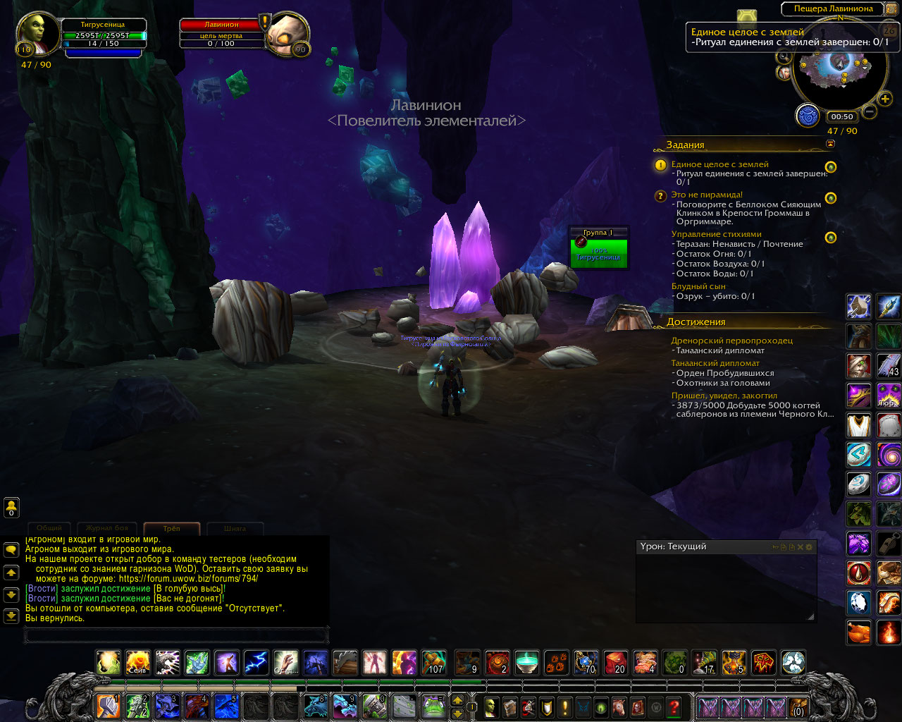 | Additional Information | От тестера: 1. https://ru.wowhead.com/quest=27934/%D0%B5%D0%B4%D0%B8%D0%BD%D0%BE%D0%B5-%D1%86%D0%B5%D0%BB%D0%BE%D0%B5-%D1%81-%D0%B7%D0%B5%D0%BC%D0%BB%D0%B5%D0%B9 2. После диалога нас должно нести под землёй. На тесте диалог робит, но топать в виде частиц пыли нам приходится самим. https://egammi.com/image/SDG2 3. Как должно работать - https://youtu.be/7xqlyX8N4Qk | ||||