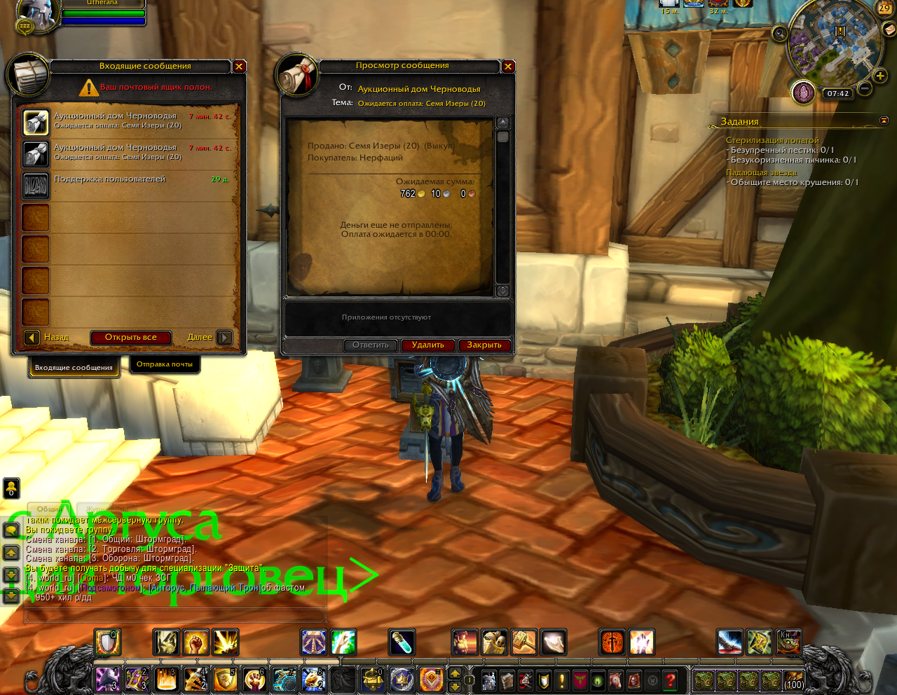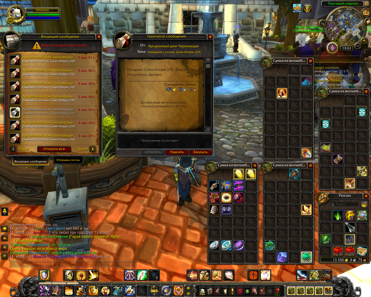 Либо золото приходит напрямую в инвентарь, либо оно не приходити вовсе. Мне приходят 2 типа письма с аукционов: 1 - Письмо, где уже приложено золото которое я могу забрать и увидеть в сумке, 2 - Письмо, где сказано что оплата ожидается и прибудет в 00:00 |