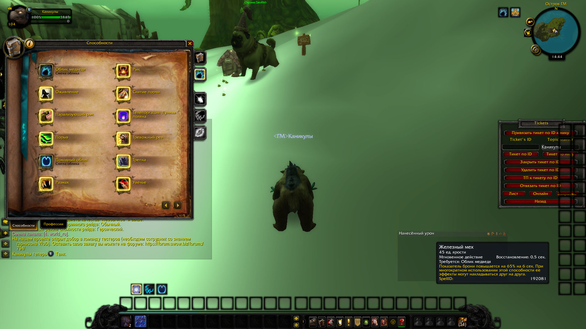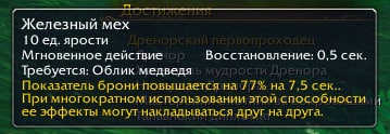 | Description | Друид (Страж) У способности "Железный" мех указана странная стоимость в 10 ярости (иногда также случайное число от 10 до 22), показывая иконку доступной для нажатия, при наборе этого количества. Фактически кнопка работает только при наборе нормального количества (45 ярости). Предположу что виной всему талант артефакта "Окровавленный мех" | ||||