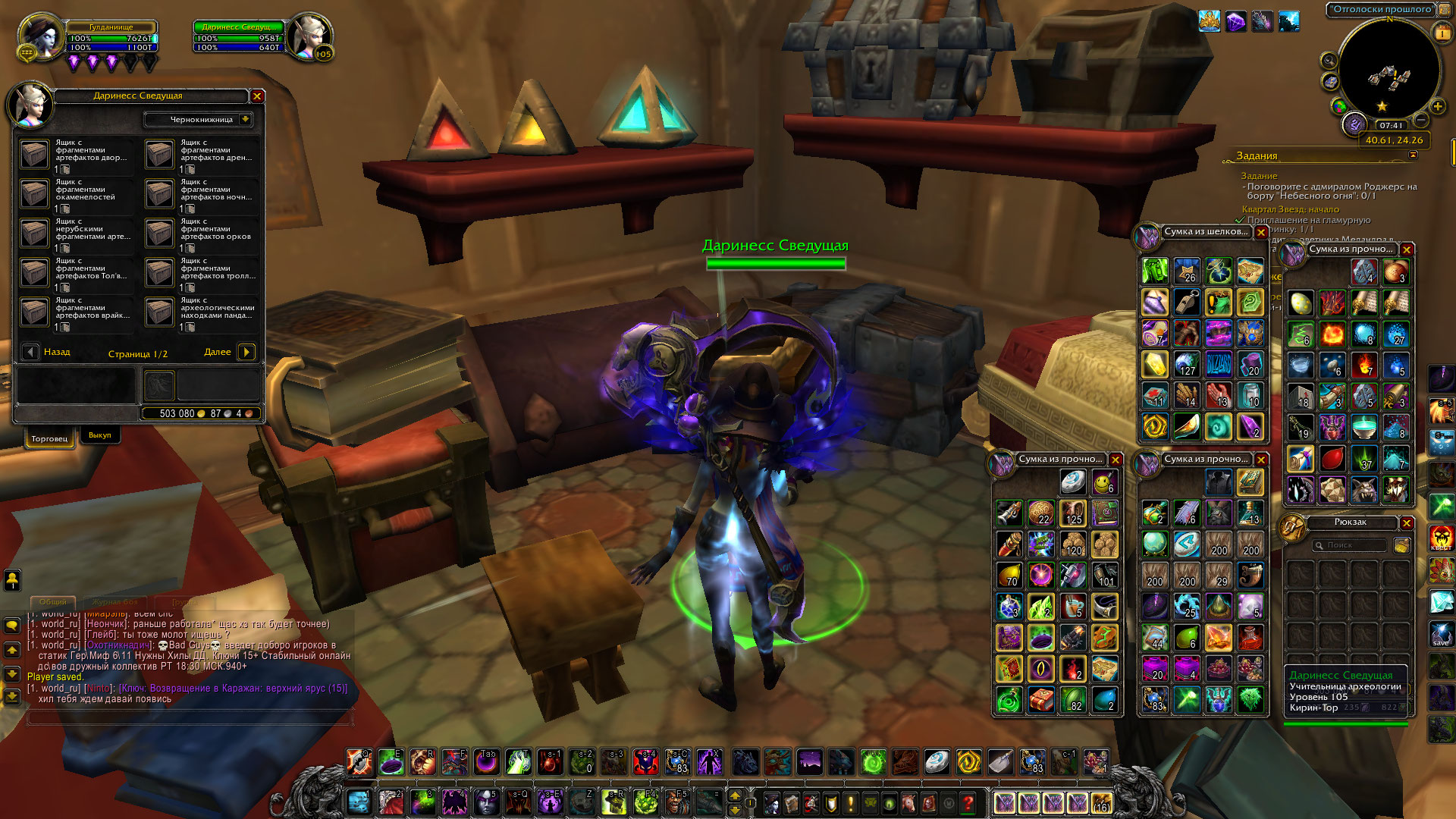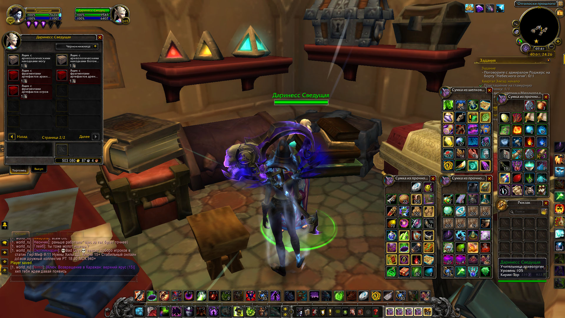 Здравствуйте, Fairy! Полагаю, произошло недопонимание и ложное ожидание относительно прокачки археологии http://tracker.legionbugs.com/view.php?id=15412 Есть информация, что эта книга выпадает во время раскопок и не должна продаваться у https://ru.wowhead.com/npc=93538/ Также можно ознакомиться со списком продаваемых вещей у https://ru.wowhead.com/npc=93538/ на вовхеде: https://ru.wowhead.com/npc=93538/даринесс-сведущая#sells Там нет этой книги. Английские комментарии также свидетельствуют об этом "Acquired from digging or spawned mobs in the Broken Isles (much like the Draenor counterpart)" На вовхеде указано "умное распределение добычи" - "доступно только игрокам, имеющим эту профессию и не имеющим этот рецепт" Также нашла гайд по археологии дополнения Легион: https://ru.wowhead.com/legion-archaeology-guide Там так же описано "Pick up Записная книжка археолога while excavating in the Broken Isles" Убивайте мобов, копайте раскопки на расколотых островах и книга вам выпадет рано или поздно. Желаю Удачи! она вам непременно пригодится в этом деле :) |