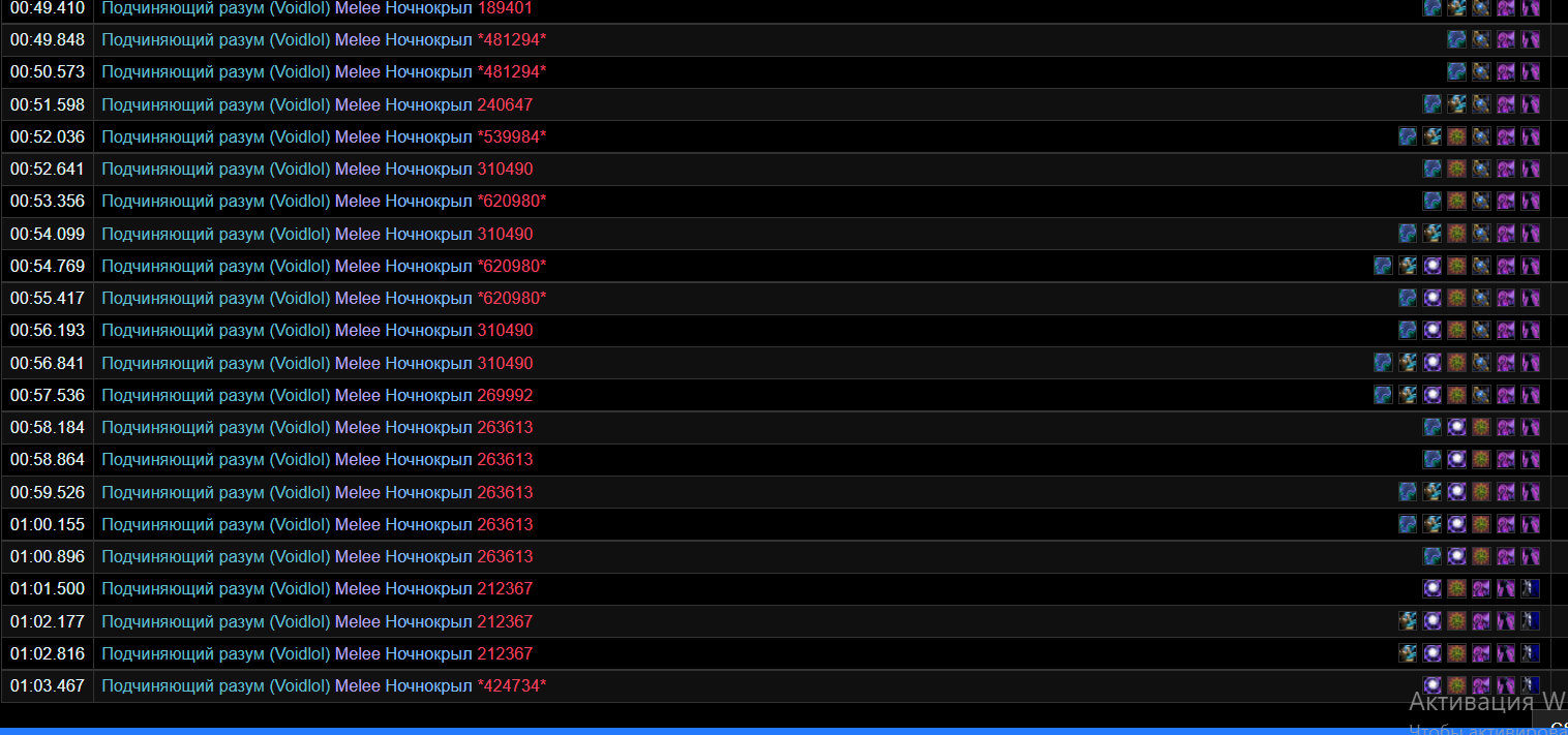 https://www.warcraftlogs.com/reports/yv84KHpgNmTX13hd#fight=last&type=damage-done&source=54&view=events&ability=-123040 еще один лог с высоким разгоном облика до 100 под конец боя в конце списка видим все тот же бардак с атаками, то 0.3 то 1 сек |