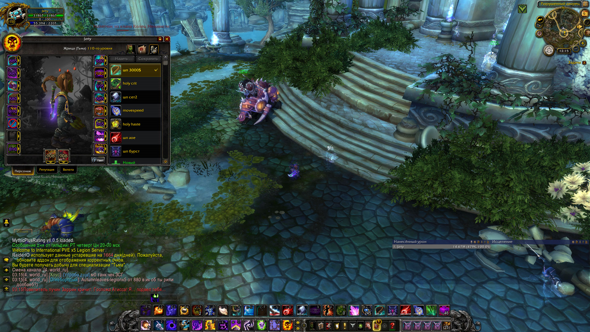 Спасибо за старания, как-то справился своими силами. Переустановил игру, проверил на ошибки. На чистый клиент зашел и пытался сохранять комплекты- безрезультатно. Заметил, когда пишешь .save и выходишь из игры с 20секундным ожиданием, то иногда сохраняет комплект. WoWScrnShot_080922_151520.jpg (705,020 bytes) |