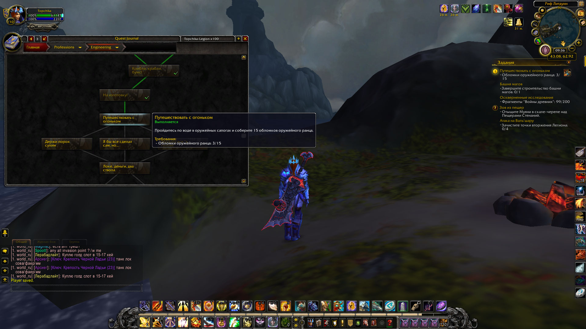 | Description | Выполняю цепочку инженерного дела, застопорился на квесте https://ru.wowhead.com/quest=40872/%D0%BF%D1%83%D1%82%D0%B5%D1%88%D0%B5%D1%81%D1%82%D0%B2%D0%BE%D0%B2%D0%B0%D1%82%D1%8C-%D1%81-%D0%BE%D0%B3%D0%BE%D0%BD%D1%8C%D0%BA%D0%BE%D0%BC#comments Засчитывает только один обломок, и то через раз, поэтому смог собрать только 3, остальные не засчитывает вне зависимости от использования нужного предмета или маунта. https://ru.wowhead.com/npc=102661/%D0%BE%D0%B1%D0%BB%D0%BE%D0%BC%D0%BA%D0%B8-%D0%BE%D1%80%D1%83%D0%B6%D0%B5%D0%B9%D0%BD%D0%BE%D0%B3%D0%BE-%D1%80%D0%B0%D0%BD%D1%86%D0%B0 должны лежать на поверхности воды и надо просто пролететь и собрать их, но не получается, хоть они и лежат под водой, взаимодейстовать с ними нельзя. Ник Topchika | ||||
