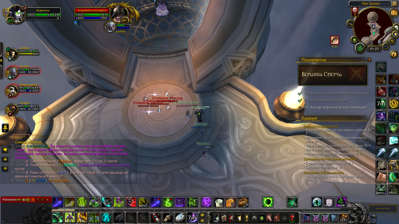 | Description | Несколько раз (не всегда), после использования https://ru.wowhead.com/spell=195072/рывок-скверны в воздухе, пропадала возможность прыгать, пересекать какие-либо небольшие препятствия на пути, а также спускаться ниже по лестницам или даже просто падать, персонаж при этом ходил по воздуху. Первый раз произошло в Каражане - после рывка на лестнице в самом начале прошел арку, повернул направо к опере и не смог перейти порог, даже тем же рывком, не мог прыгать, ходил по воздуху при попытке спуститься по лестнице. Единственный способ преодолевать препятствия и спускаться - прыжок метаморфозой или в танкоспеке. Второй раз - в путешествиях во времени, не смог перейти порог у лестницы на втором скрине. При телепортах и т.д. - состояние не меняется. Если сесть на маунта и подняться в воздух, потом слезть - персонаж также ходит по воздуху. | ||||