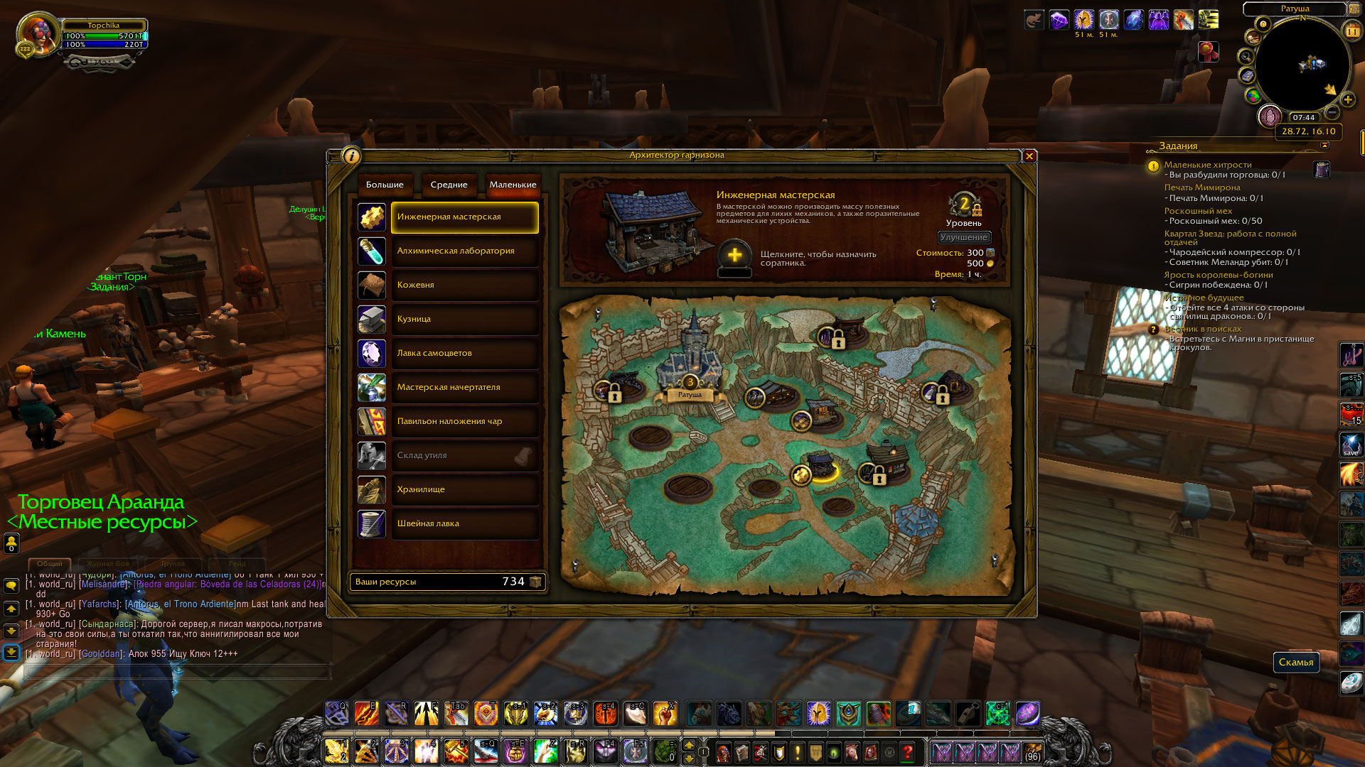 | Description | Забагалась инженерная мастерская в гарнизоне, а именно: после улучшения до второго уровня, в ней пропали все нпс, у которых можно делать заказ на https://ru.wowhead.com/item=111366/%D1%87%D0%B0%D1%81%D1%82%D0%B8-%D0%BC%D0%B5%D1%85%D0%B0%D0%BD%D0%B8%D0%B7%D0%BC%D0%BE%D0%B2 и обменивать https://ru.wowhead.com/spell=177054/%D1%82%D0%B0%D0%B9%D0%BD%D1%8B-%D0%B4%D1%80%D0%B5%D0%BD%D0%BE%D1%80%D1%81%D0%BA%D0%BE%D0%B3%D0%BE-%D0%B8%D0%BD%D0%B6%D0%B5%D0%BD%D0%B5%D1%80%D0%BD%D0%BE%D0%B3%D0%BE-%D0%B4%D0%B5%D0%BB%D0%B0 на рецепты. | ||||