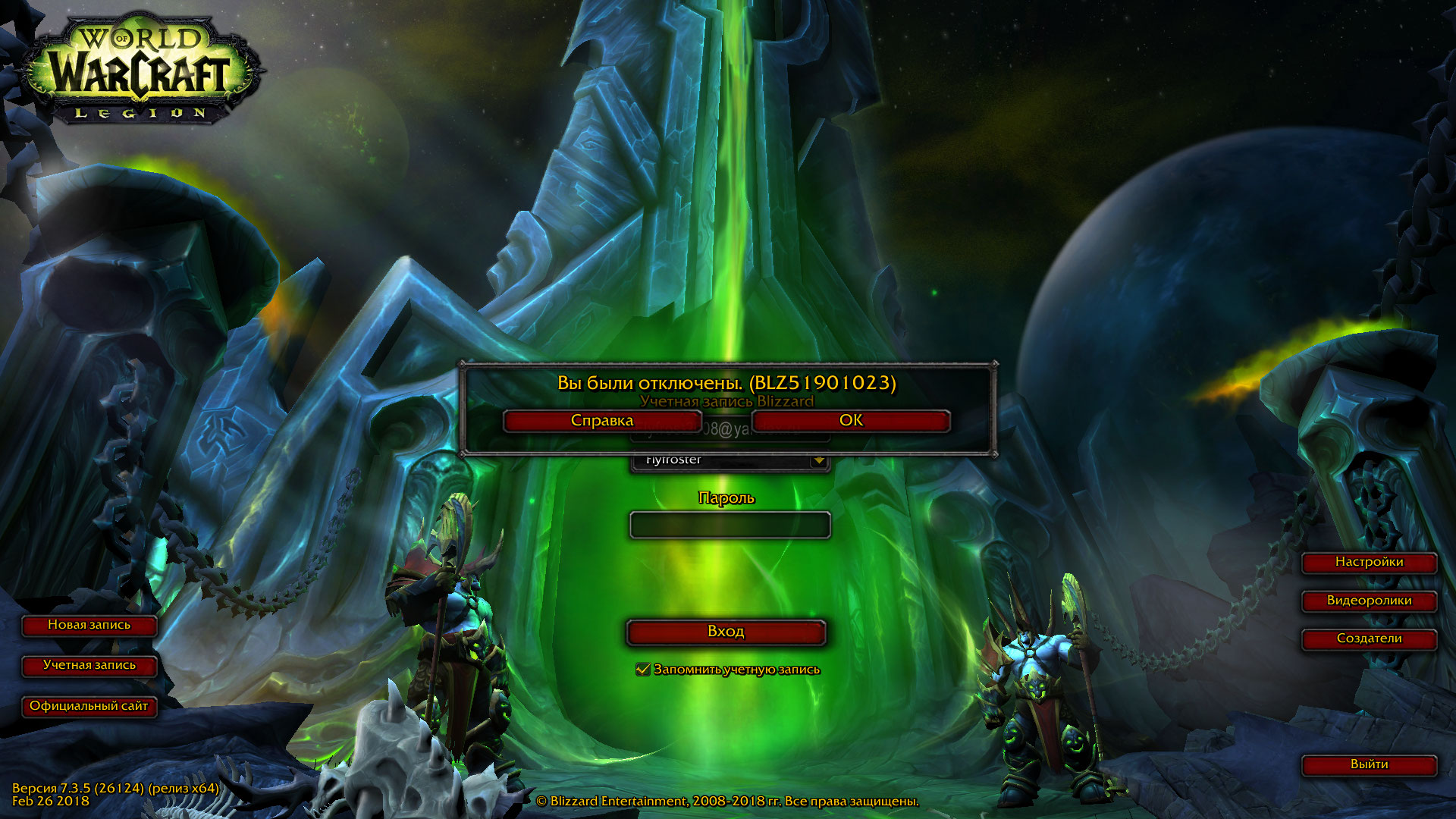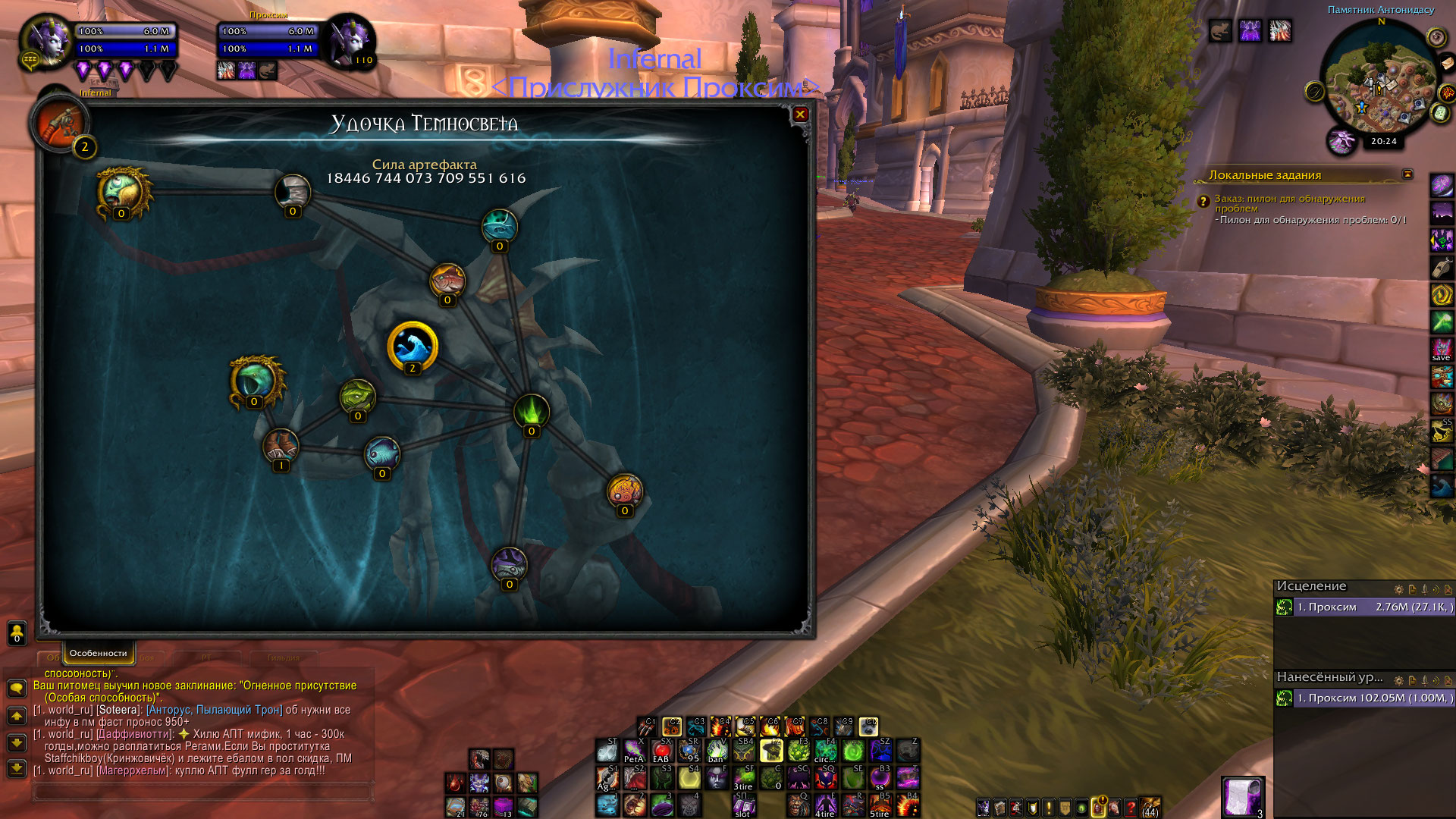 | Description | Выполнял сценарий на получение артефактной удочки, всё прошло гладко. По завершению сценария и получения самой удочки, в Даларане, решил изучить первый талант артефакта, и тут началось. игра зависла. в ДЗ висит мёртвым грузом. При попытке перезайти на данного персонажа, игра теперь просто виснит. Иногда при полной загрузки локации, иногда удаётся загрузить персонажа на секунду (затем снова зависает игра). Были предприняты неоднократные попытки исправить персонажа в ЛК. Сначала исправил "на кладбище" (результатов не дало), затем "в начало"(результатов не дало), затем "домой" (результатов не дало). На других персонажей могу спокойно заходить, игра ведёт себя стабильно. Помогите пожалуйста решить данную проблему. На персонаже наиграно свыше 300 часов. Legion X100 Персонаж - Проксим (Альянс) | ||||