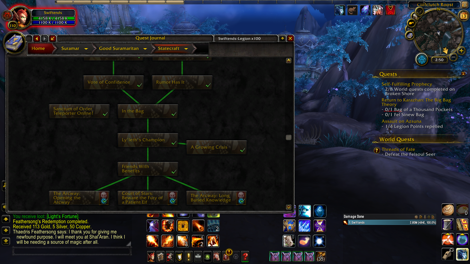 | Description | About 2 days ago from when I'm posting this the server went down and I just completed Ly'leth's Champion Quest and the server went back a few minutes to where It undid everything for the quest however the quest was also so longer there and BTWQuests addon said i had it completed, but in Achievement "Good Suramaritan" the Statecraft which you get for doing the Quest I no longer have and can't get preventing me from doing Pathfinder please help. | ||||