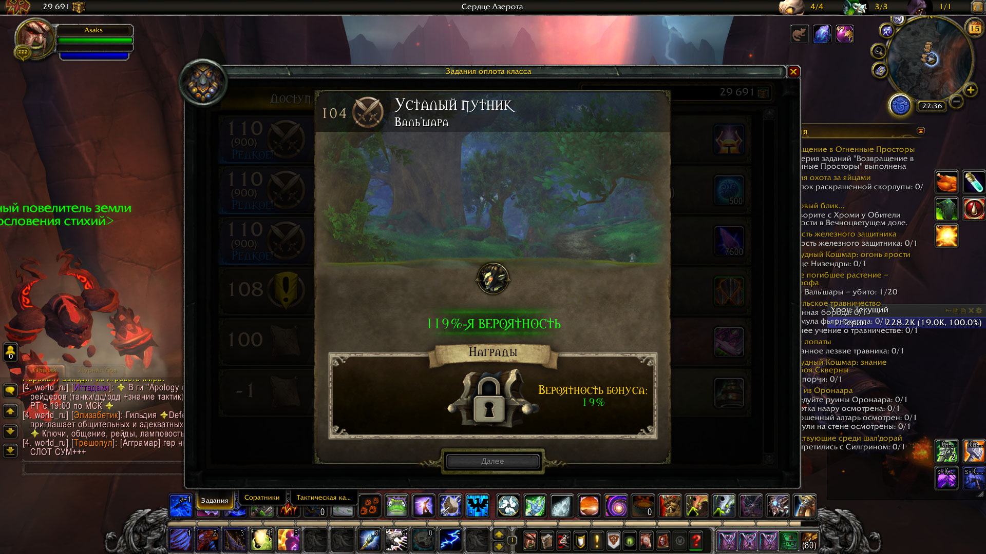 | Description | задание в оплоте класса на карте выполнено при нажатие показывает что выполнено но на сундуке всё так же весит замок и нельзя нажать,из-за чего я не могу выполнять другие задания которые стоят в цепочке квестов для оплота класса шаманов | ||||