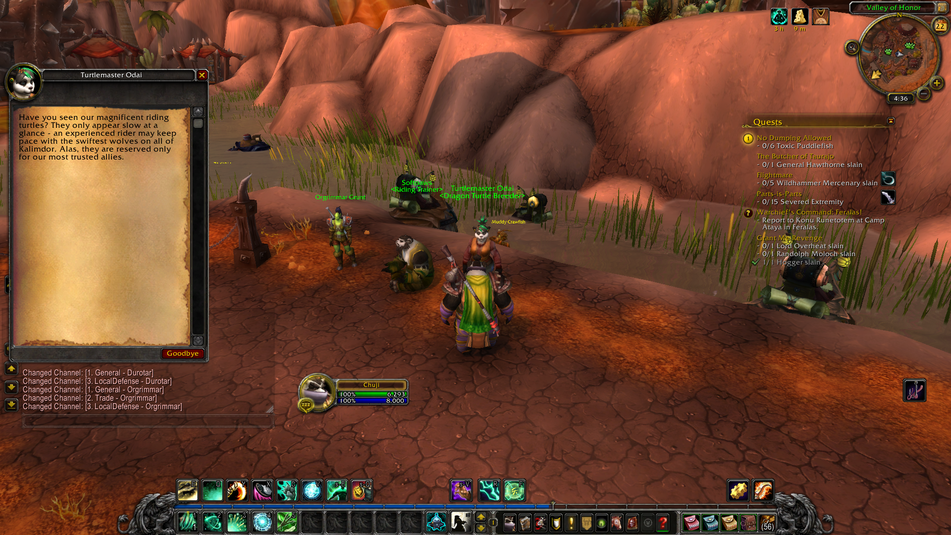 | Description | After chosing a faction with your Pandaren (in this case Horde) and getting to Level 20, the Dragon Turtle Vendor of the Huojin "Turtlemaster Odai" in the Valley of Honor, Orgrimmar - does not let you buy any Mounts. The text the vendor displays instead is the "You have to be exalted to buy a mount" message. | ||||