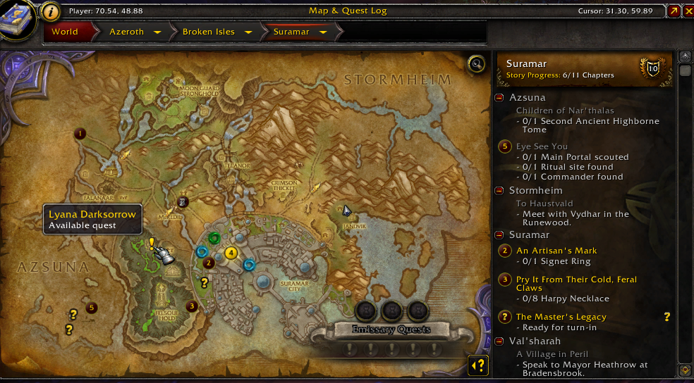 | Steps To Reproduce | Complete quest 'Lyana Darksorrow' and turn it in Open Suramar in world map and see it is still present there | ||||
