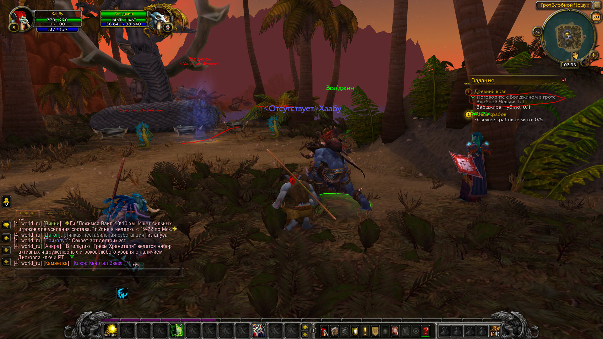 | Additional Information | На оффе после "Поговорите с Вол'джином в гроте Злобной Чешуи" был диалог и начиналась битва с боссом. | ||||