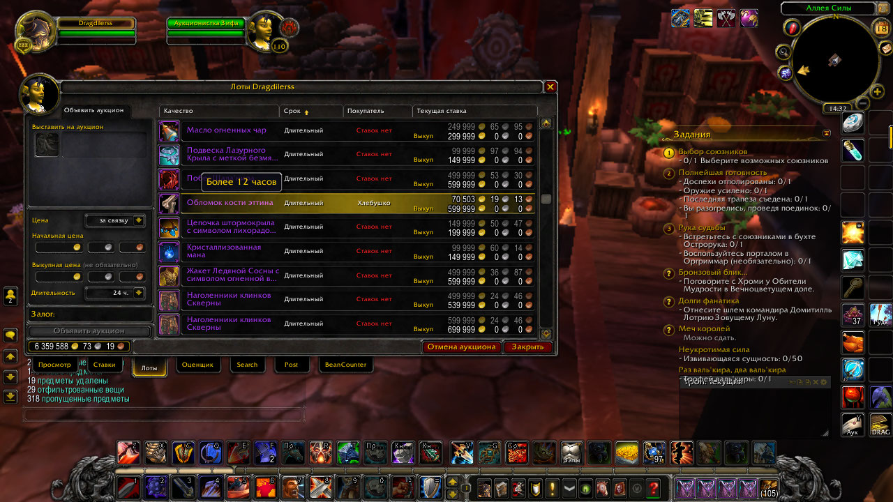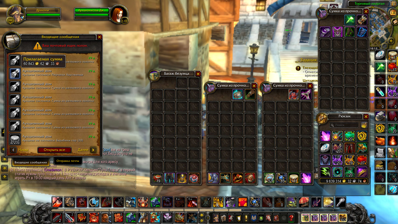 К слову о аукционе, пару раз сталкивался с таким багом: если продолжительное время не забирать голду с проданной вещи, она может сама уменьшаться лежа на почте |