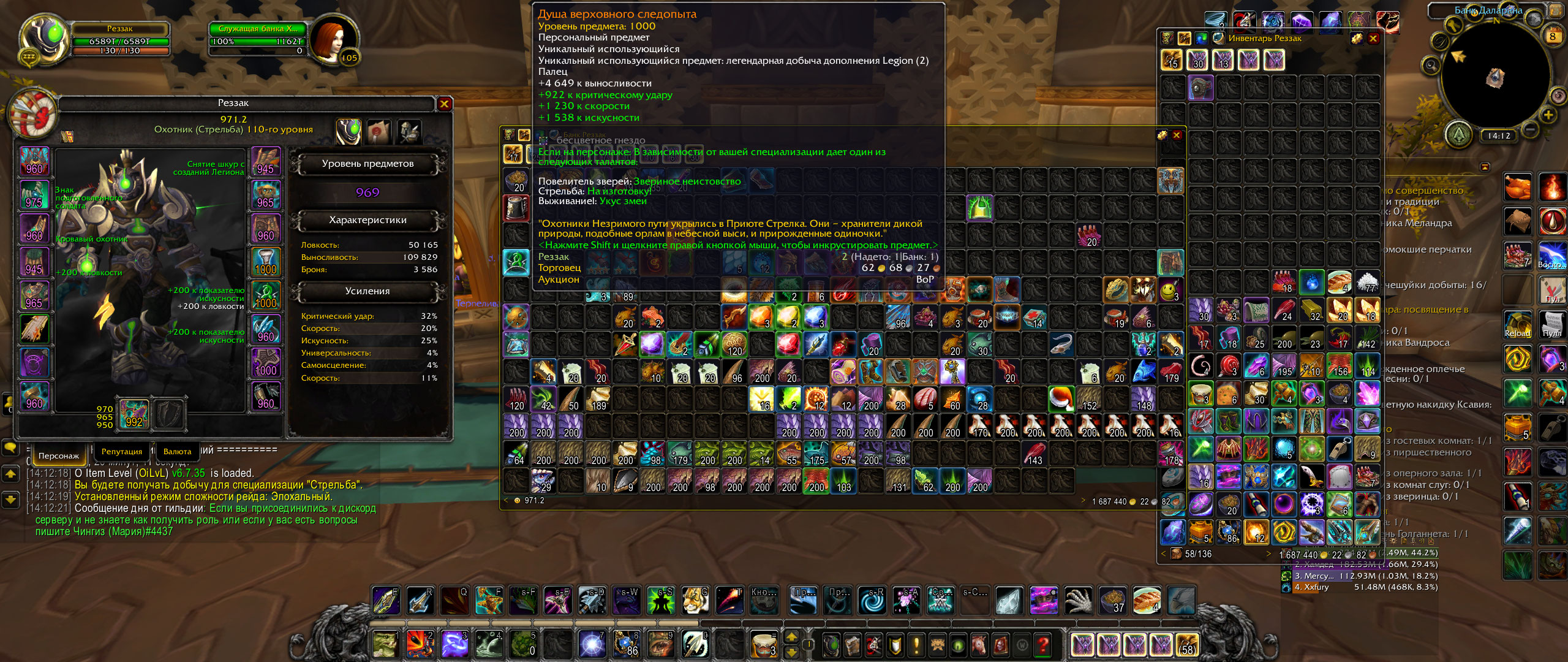 | Description | После накопления 1000 пробуждающей сущности купил очищенную эссенцию титана. После использования данного итема мне выпал легендарный предмет, который ранее я уже получал (Все неиспользуемые легендарные предметы я скидываю в личный банк). Прогулявшись до банка обнаружил, что половина предметов, убранных туда, пропала. После нескольких релогов баг с банком самоустранился, все вернулось на свои места, однако, теперь у меня два легендарных предмета "Ахор, Неутолимый голод". P.S. Это уже второй случай с временной пропажей предметов из инвентаря/банка. В первый раз часть предметов возвращал через поддержку. | ||||