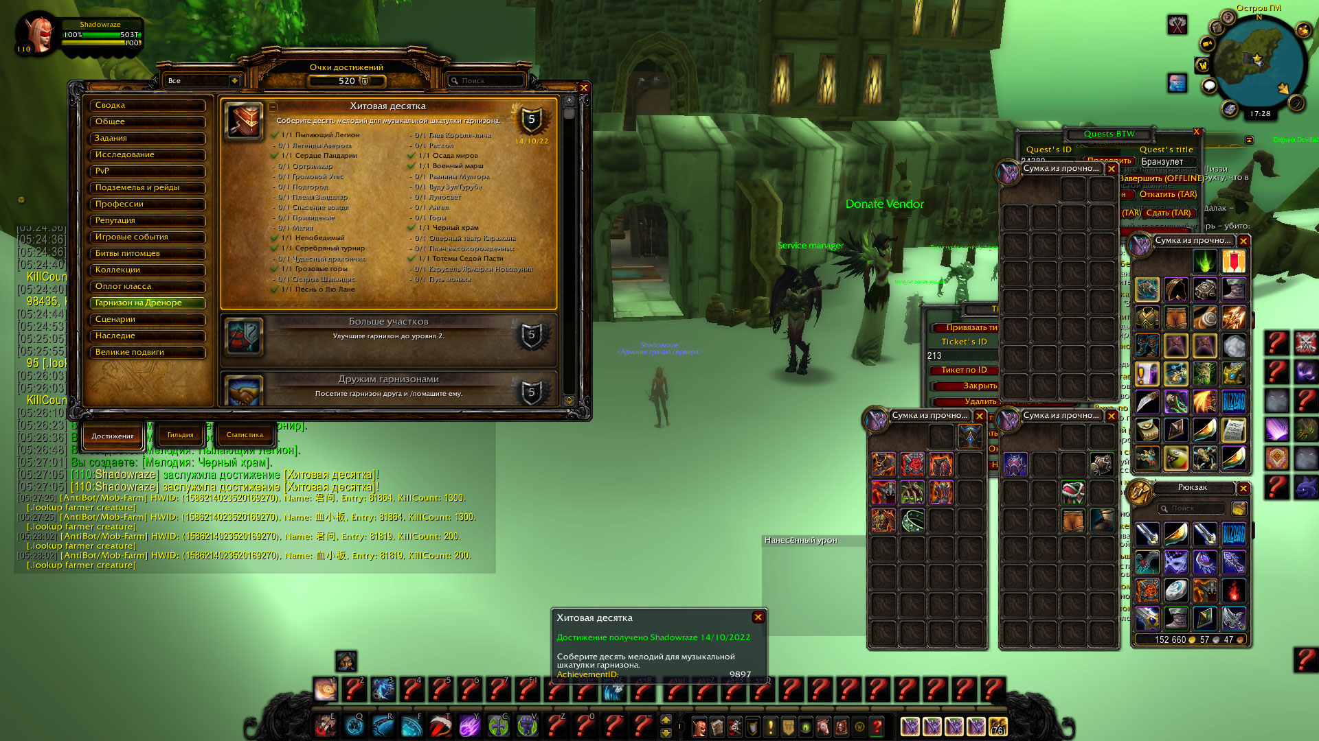 Добрый день! https://ru.wowhead.com/achievement=9897 у меня засчиталось уже давно, речь идет уже о достижении более 10 мелодий https://www.wowhead.com/ru/achievement=9914 и о самой мелодии Ангела https://ru.wowhead.com/item=122222. При открытии сундука на Арене Гурубаши в сундуке находится и мелодия, прочитываю, а она не отражается зеленым в достижении при прочтении. |
