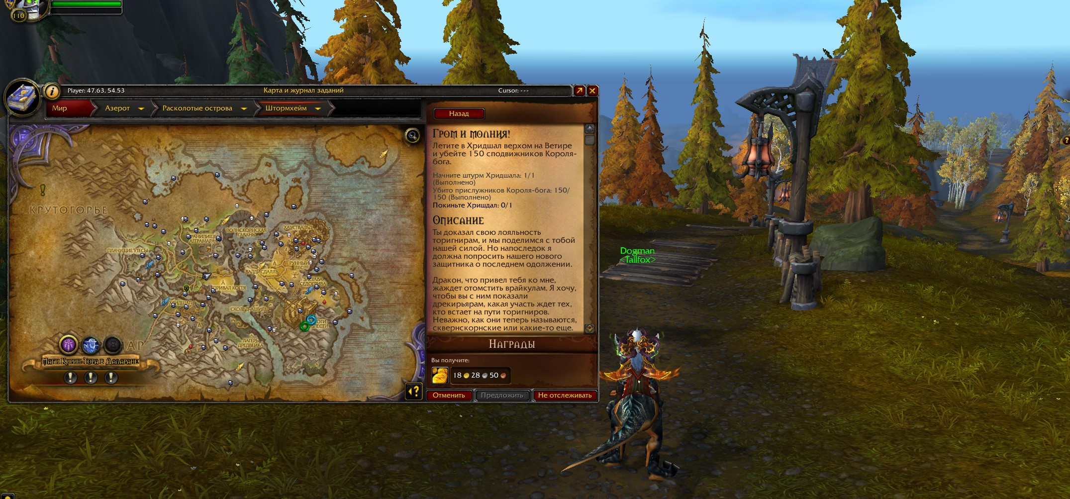 | Description | Здравствуйте. До того как решится проблема с квестами https://ru.wowhead.com/quest=39652/%D0%B3%D0%B4%D0%B5-%D0%B2%D0%BB%D0%B0%D1%81%D1%82%D0%B2%D1%83%D1%8E%D1%82-%D0%B4%D1%80%D0%B0%D0%BA%D0%BE%D0%BD%D1%8B и https://ru.wowhead.com/quest=38624/%D0%B3%D1%80%D0%BE%D0%BC-%D0%B8-%D0%BC%D0%BE%D0%BB%D0%BD%D0%B8%D1%8F , прошу направлять людей на этот пост, чтобы игроки которые не могут их выполнить прочитав, смогли выполнить их. 1ый квест выполняем сами (если ДХ прыгая по скалам, если другие классы то зовем товарища с полетами и 2 местным флай маунтом). Далее сдаем квест и берем следующий на 150 мобов. После того, как взяли квест никого не убиваем, не трогаем Ветира и демонов внизу, а бежим к этому НПС https://ru.wowhead.com/npc=97074/%D1%85%D1%83%D0%B3%D0%B8%D0%BD%D0%BD Хугинн и просто сдаем квест по которому требовалось убить 150 мобов. Админу печенек) | ||||