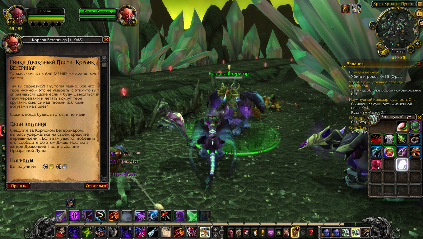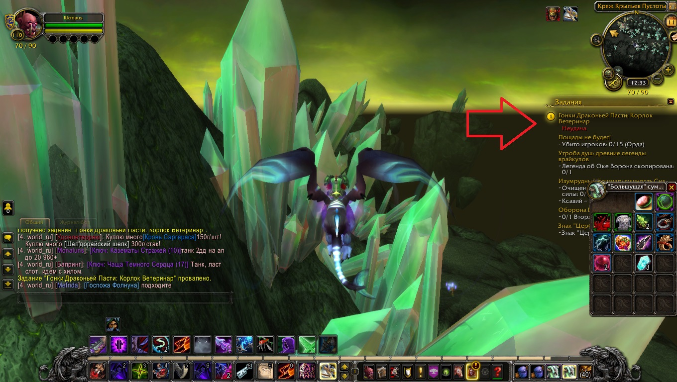 | Description | Не работает квест "Гонки Драконьей Пасти; Корлок Ветеринар". Дракон моба летит слишком быстро, или же некорректно работают скрипты. Итог: квест проваливается. | ||||