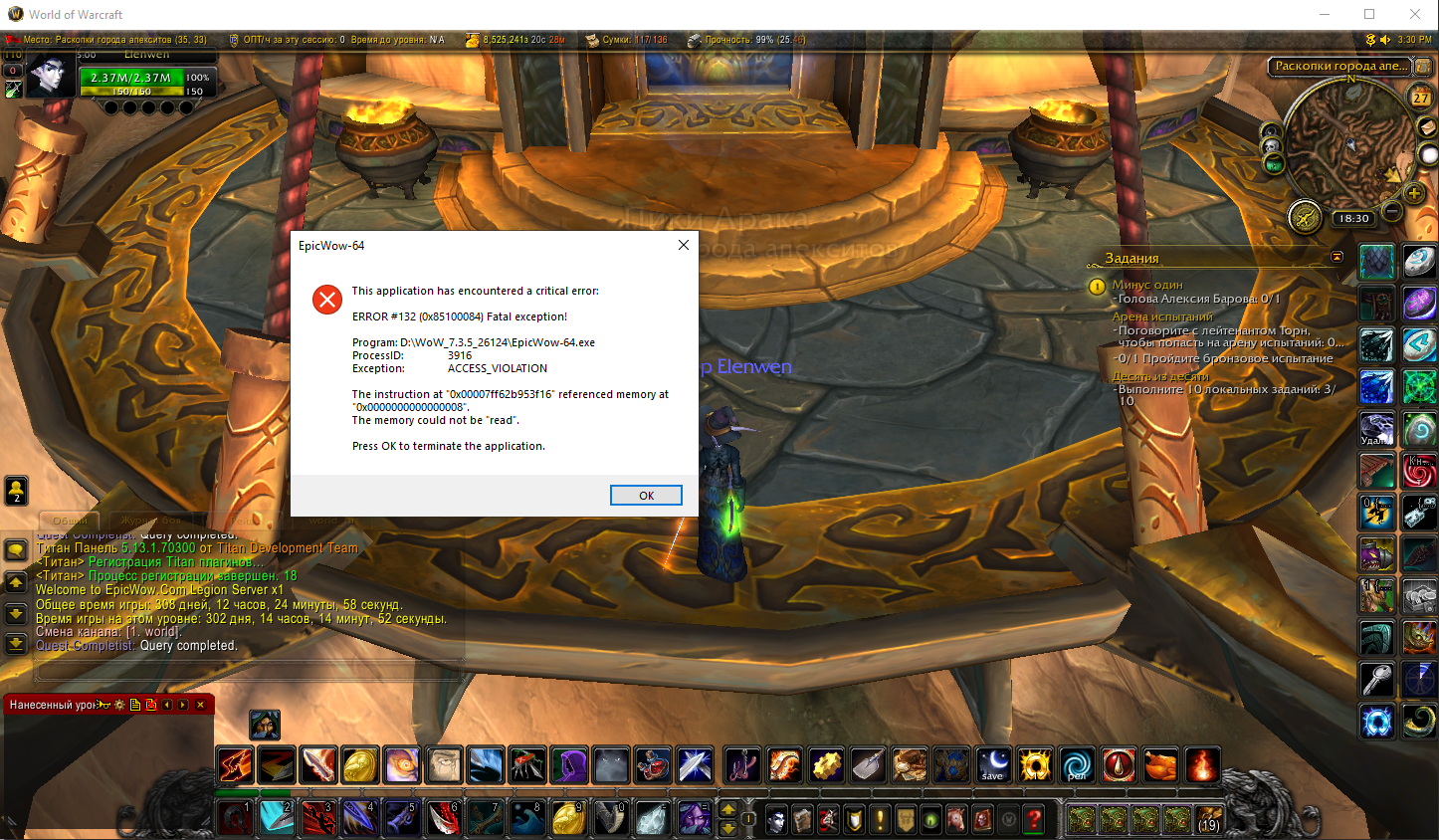Заметила, что при каждой смене локации (телепорт, вход-выход из инста, камень возвращения) игра вылетает, чаще всего с ошибкой. ProcessID различаются, проверка в лаунчере не помогла. Связано ли это с данной задачей? |