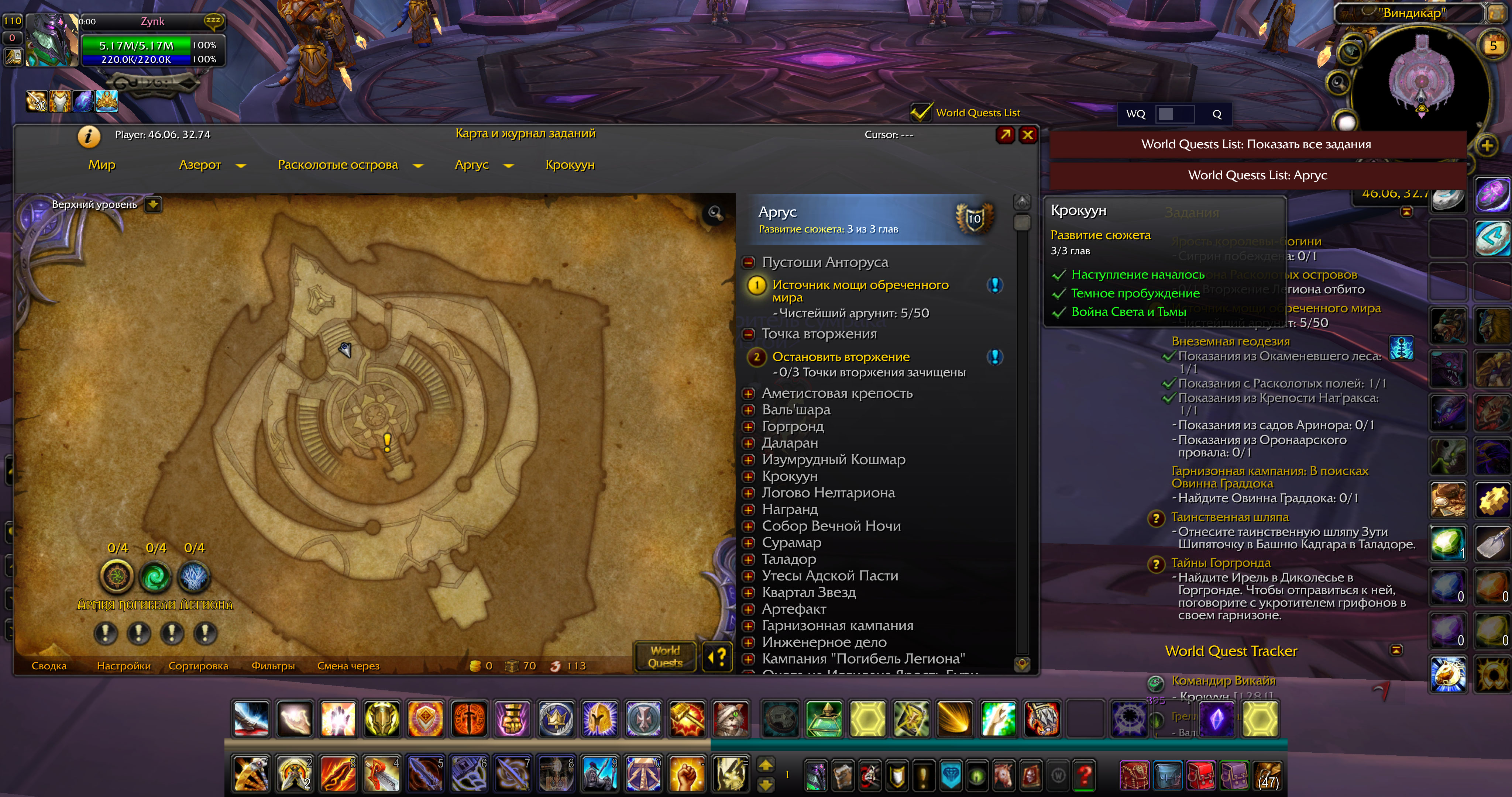 интересует проблема, почему я завис только на аргусе, когда у меня уже квесты на МаККари и Пустошах Анторуса. |