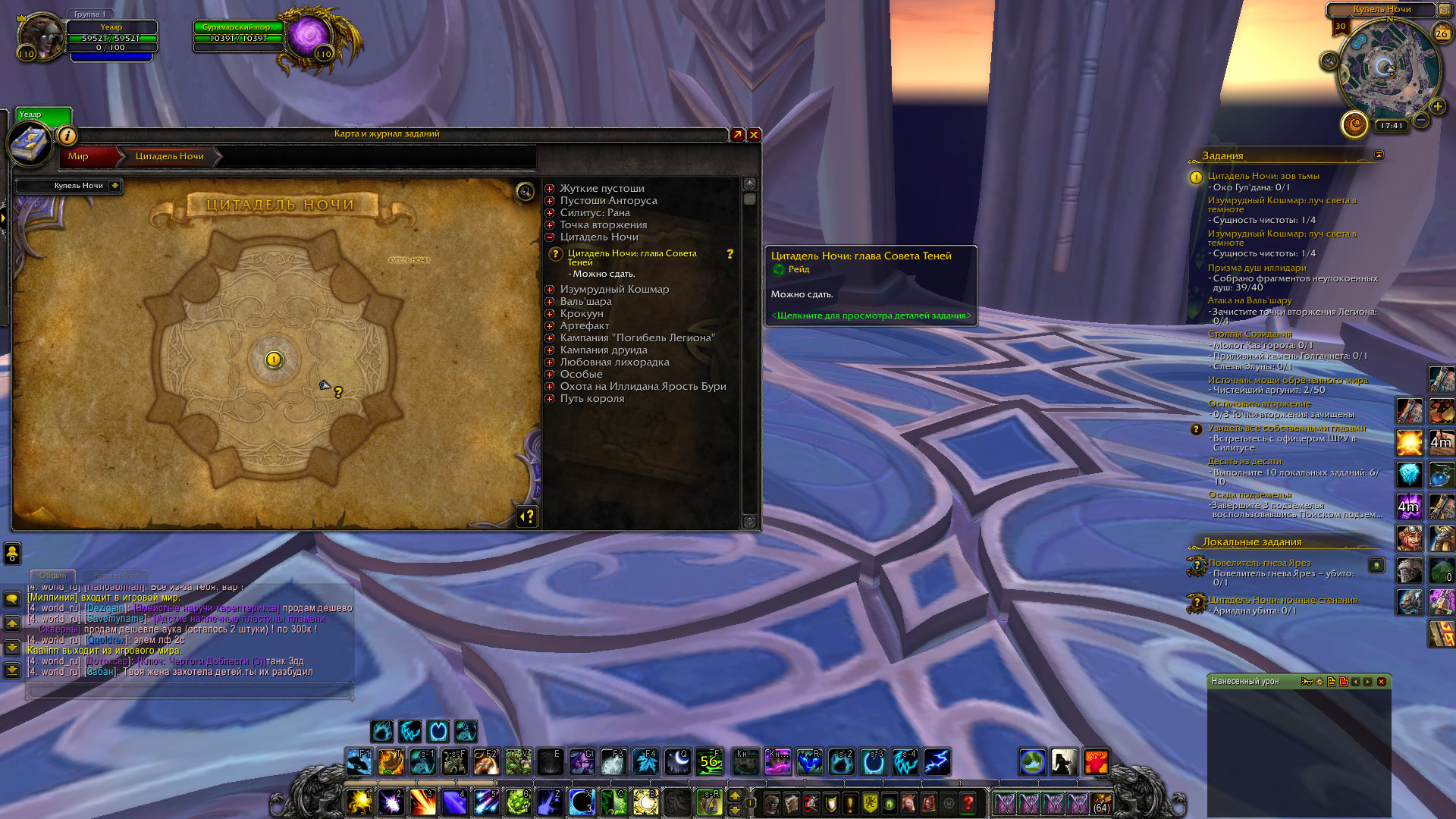 | Description | Выполнил условия задания... Нужно его сдавать в рейдовой зоне Цитадель Ночи, НПС(Кадгар) отсутствует. Соотвественно завершить задание невозможно | ||||