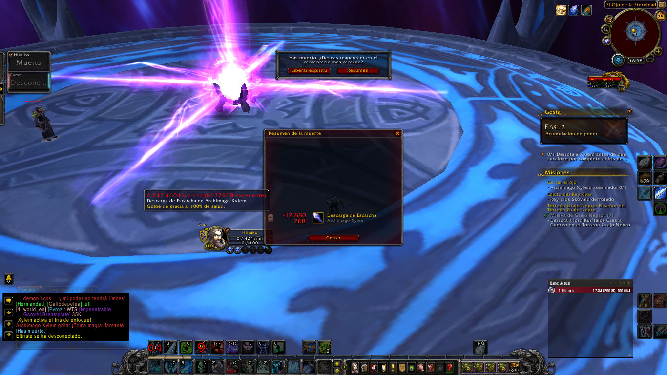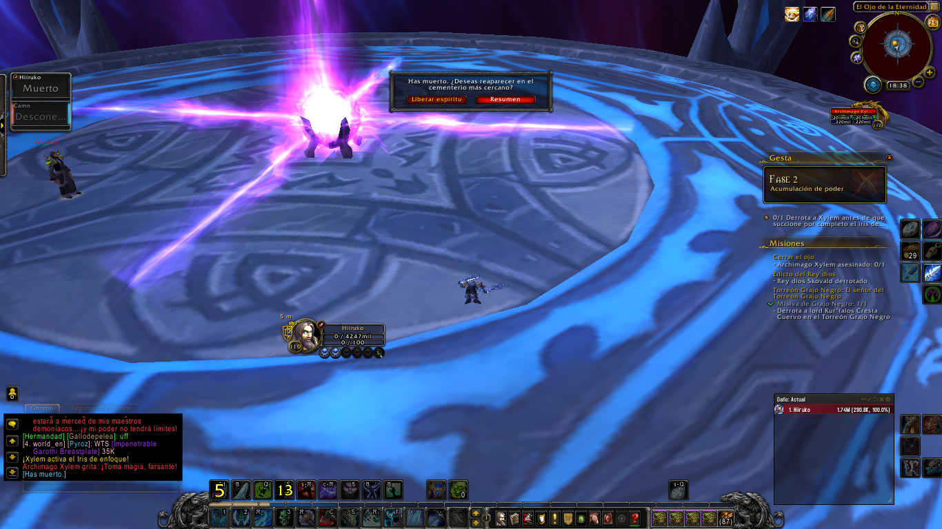 | Description | La mision de Arma Artefacto llamada Cerrar el Ojo en las Islas Bruptas, mas bien en el Punto de Liberacion, que consiste en entrar al Ojo de la eternidad y matar al NPC llamado Archimago Xylem, no puede ser completada ya que el mismo NPC te mata de 1 solo golpe el daño es demasiado exagerado, haciendote entre 4 y 7 Millones de daño instantaneo, cosa que no deberia ser asi, Soy un DK escarcha lvl 110 con 918 nivel de objeto y no puedo completar dicha mision por lo miso antes expuesto, espero se resuelva esta situacion y seguir disfrutando de la experiencia de juego en este servidor | ||||