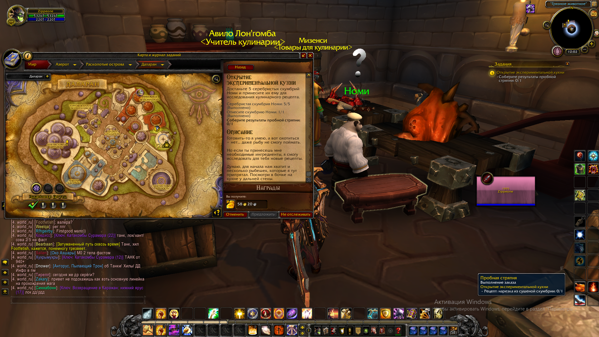 | Description | Открытие Экспериментальной кухни Квест не могу сдать , появляется что рыба лежит на столе, я как бы ее беру и ни чего не происходит , релог перезапуск , кеш не помогают | ||||