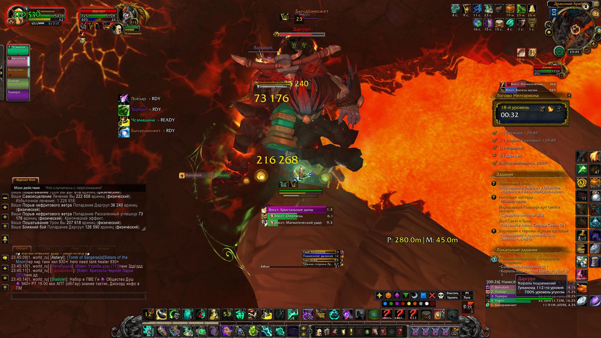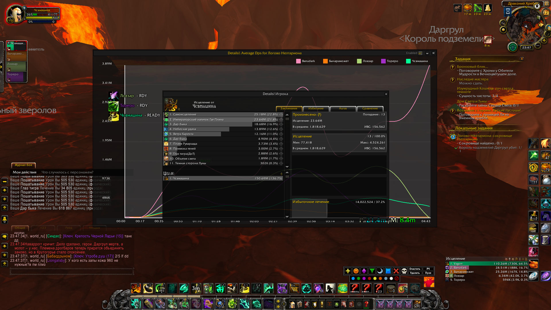 пример того, что пошатка до сих пор не работает, переодически спадает, уларога дважды заскринил, перед фазой она пропала, пока шла фаза с перемещением тотемов, пошатка обнулилась и дальше уже снова появилась и после вновь пропала, также на Нараксас спала, насколько я заметил на моменте когда она начала съедать мобов, сменился таргет, съела одного и после пропал дебаф, на ласте же после призыва моба спала пошатка, самое интересное, в том, что https://www.wowhead.com/ru/item=137079/успокаивающий-кушак-гая-плина работает, словно есть внутренний счет, после пропадания дебафа, от которого отхиливает 25% от пошатки, но при этом сама пошатка очищающим отваром не скидывается WoWScrnShot_112222_233444.jpg (570,969 bytes) WoWScrnShot_112222_234516.jpg (569,510 bytes) WoWScrnShot_112222_234742.jpg (464,097 bytes) |