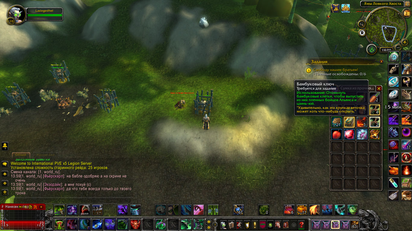 | Additional Information | От тестера: При использовании https://www.wowhead.com/ru/item=74260/%D0%B1%D0%B0%D0%BC%D0%B1%D1%83%D0%BA%D0%BE%D0%B2%D1%8B%D0%B9-%D0%BA%D0%BB%D1%8E%D1%87 , не засчитываются освобожденные пленники https://www.wowhead.com/ru/npc=55201/%D0%BF%D0%BB%D0%B5%D0%BD%D0%BD%D1%8B%D0%B9-%D1%86%D0%B7%D0%B8%D0%BD%D1%8C-%D1%8E%D0%B9 и https://www.wowhead.com/ru/npc=55490/%D0%BF%D0%BB%D0%B5%D0%BD%D0%BD%D1%8B%D0%B9-%D0%B1%D0%BE%D0%B5%D1%86-%D0%B0%D0%BB%D1%8C%D1%8F%D0%BD%D1%81%D0%B0 https://www.wowhead.com/ru/quest=29559/%D1%81%D0%B2%D0%BE%D0%B1%D0%BE%D0%B4%D1%83-%D0%BD%D0%B0%D1%88%D0%B8%D0%BC-%D0%B1%D1%80%D0%B0%D1%82%D1%8C%D1%8F%D0%BC | ||||