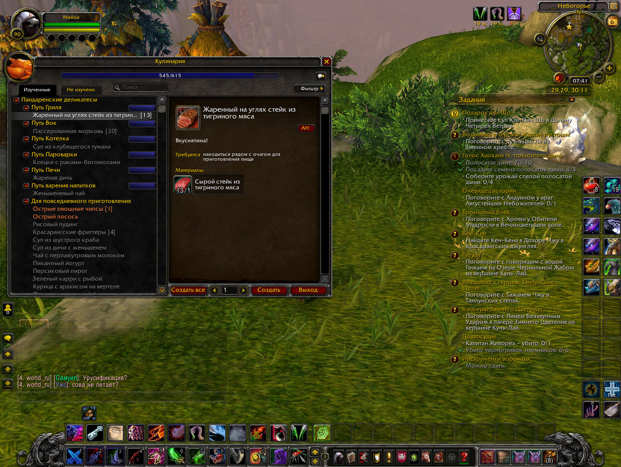 | Description | Возникли сложности с данной профессией в Пандарии. Прокачал её до 545 уровня. Выполнил задания мастеров и получил по одному рецепту от каждого. Однако следующие рецепты выучить не получается. Что можно сделать? | ||||