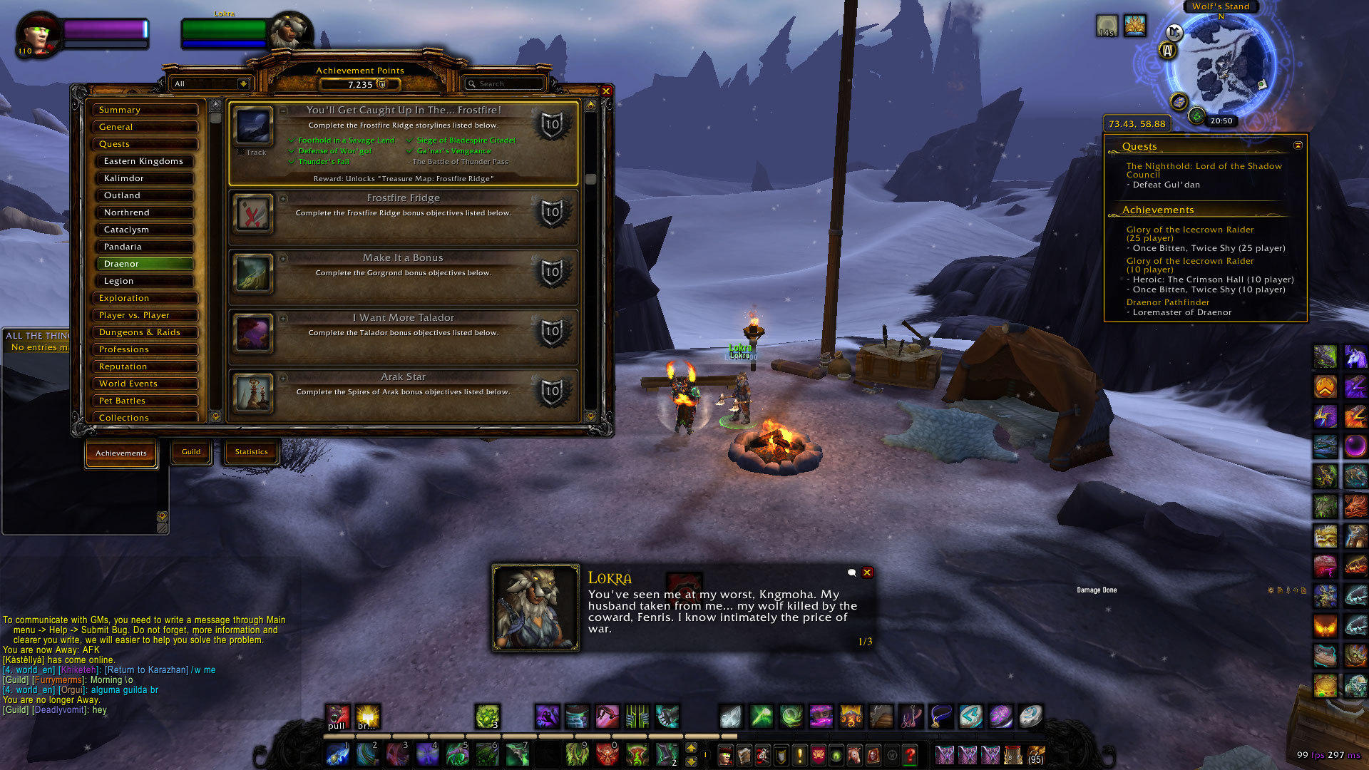 | Description | hello I wasn't able to pick the last quest in Frostfire ridge which is "the Battle of thunder pass" NPC doesn't give any quests and I checked the whole map to see if I'm missing some quests but I couldn't find any!! I'm uploading screenshots for the issue please help me finish it!! Character name: kngmoha Realm: Legion x100 thanks in advance! | ||||