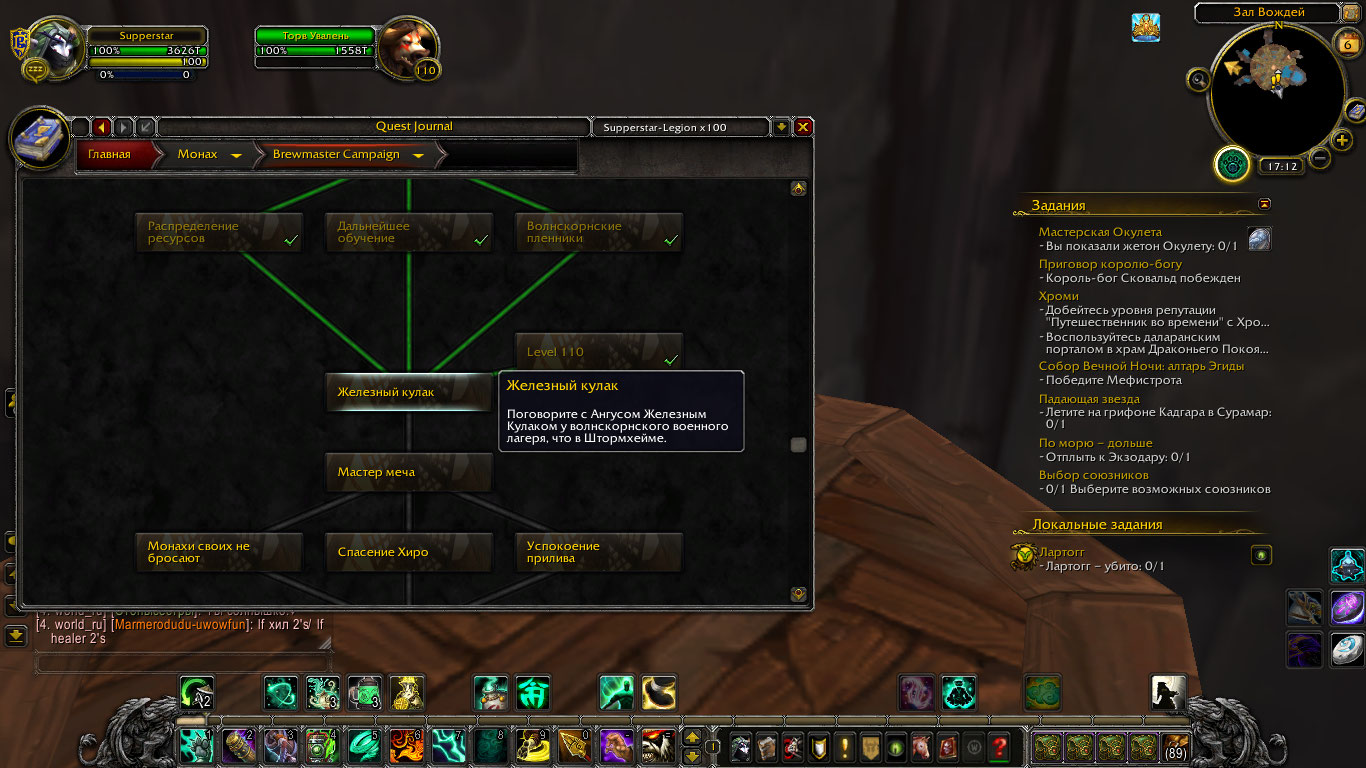 | Description | 1.Supperstar , монах , ночной эльф, X100 2.Квест "Железный кулак" Кампания Монаха , NPS Железный Поньшу задание не выдаёт, его у него просто нет. | ||||