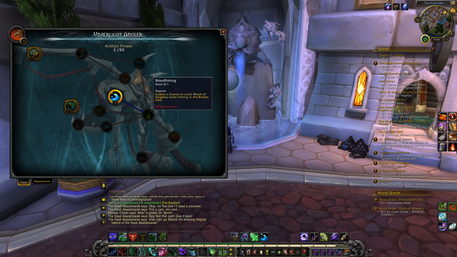 | Description | My Underlight Angler artifact doesn't properly unlock it's traits. It allows me to spend the first point and opens the tree but none of the nodes become active. And it continues to prompt me to spend more points in the main ability (which goes up from 100 AP to 300 AP in cost) which cannot be done. After a re-log the trait tree resets back to it's original unopened state but does not refund the 100 AP spent to unlock the tree. Speculations: I was reading through the other recent bugs involving the pole and i think when they fixed the bug that let you spend multiple points in the main-ability (which is only supposed to ever have 1 point), they didn't actually fix the main ability to not NEED 3 points spent to activate the initial node. So while the bug of spending more points is no longer a thing, it still requires 3 points spent to properly unlock the next node, which is now impossible. This was the first idea that came to mind while shifting through everything. However it's also possible that the node is being automatically unlocked as soon as you acquire the pole instead of needing a point to be spent as iirc when I first equipped the pole, the Main ability was already unlocked before I'd spent the 100 AP the first time at the Pearl Altar. So it's possible that the ability is already capped automatically and can't properly register being unlocked. This is also a possible option. But one I can't 100% confirm as the pole always has the 1/1 for the ability now and I could just be mis-remembering the ability being already unlocked when I first got the pole. It's also possible that it maybe a language exclusive bug, but this is harder for me test. I'm using the english client and the pole's inventory item name is in Russian? , but everything else seems to work properly in english. I doubt this is the problem but just for completeness sake I'll mention it. | ||||