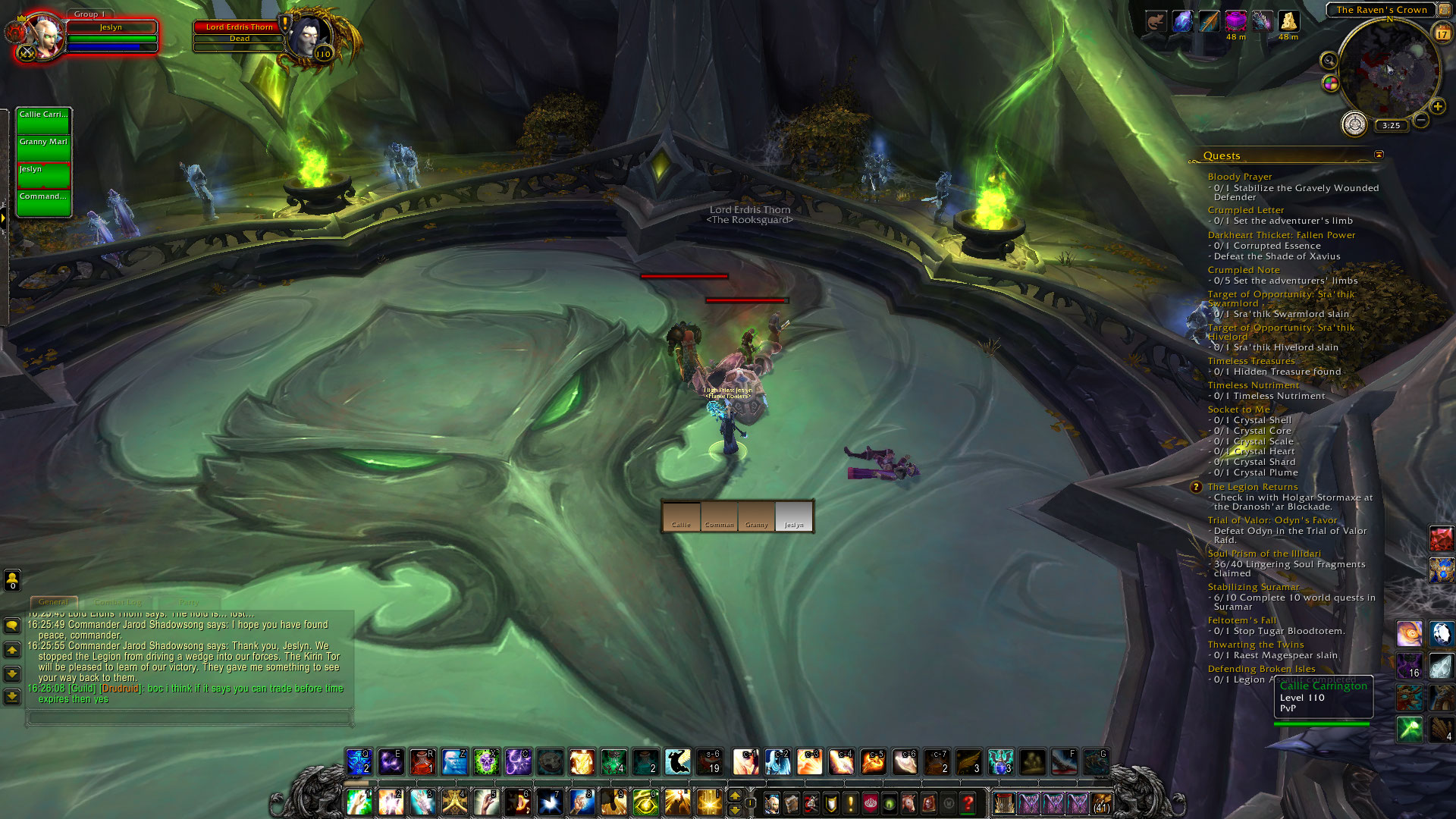 | Description | Hello, I have been trying to complete holy priest quest for Artifact in Broken Shore but the amount of bugs makes it impossible. First on stage 1, very often my companions are stuck somwhere and don't want to attack and if not that issure then enemies are bugged in the wall and can't be targetted. Another problem in next stages is combat bug. I managed to kill the last boss in this quest but because I was in combat, the next stage which is to take portal to Dalaran didn't apper to me so I couldn't finish it. I took hs to Dalaran but the quest remain incomplete. Another problem appear on the last boss when my companions were still red, and didn't join me in fight, they were standing on the aoe damage, when when i tried move the boss or stun him, made it impossible to heal. I have 919ilvl and i try around 14 times, wasted my time and nerves for this quest. I hope you can fix it. | ||||