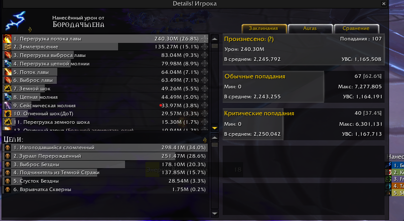 На скрине +- 985 шаман, но далеко не в максимально дпсном гире, за большой ключ вполне выходят 6-8м оверола Что значит :Hunterlol , какой по твоему крит мин? И что это В инете написано, что грозовой разрядник идельно для 3 более целей. Попробовал поток лавы, что-то не вижу 3x. Что за 3х |