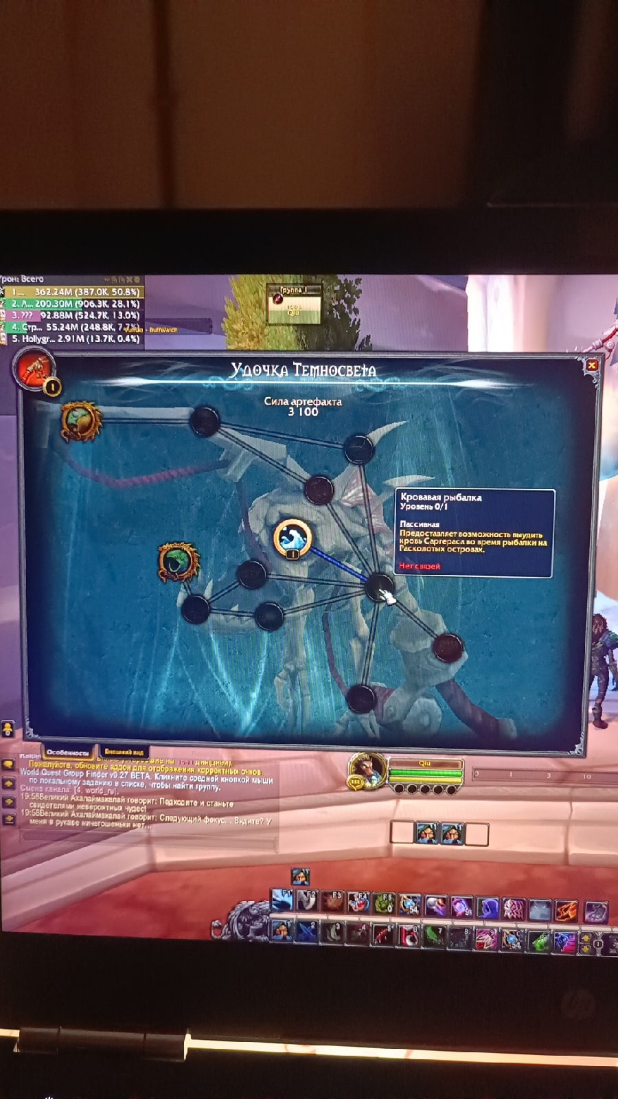 | Description | Получила удочку, пошла качать как артефакт, набрала 3800 ед. силы артефакта, прилетела в Даларан подошла к фонтану, выбрала жемчужену Темносвета нажала на Подводное течение, раскрылись следующие умения, но я не могу их выбрать, пишет что нет связи. | ||||