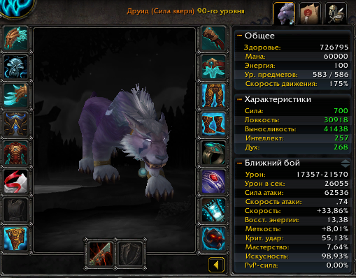 | Description | У ферала в коте неверный расчет урона. https://youtu.be/UFOfk3cP9Do?t=1811 - 550 ферал с офы имеет 24к максимальный урон. Оружие со скоростью 3.6; https://youtu.be/VUoYcUf2DjM?t=281 - 581 ферал с офы (ссылка на армори в описании к ролику) имеет 34к максимальный урон. Оружие со скоростью 3.3. У нас на сервере 583 ферал (скриншот в приложении) имеет 21к максимальный урон. Очень критичный баг для Ферала | ||||