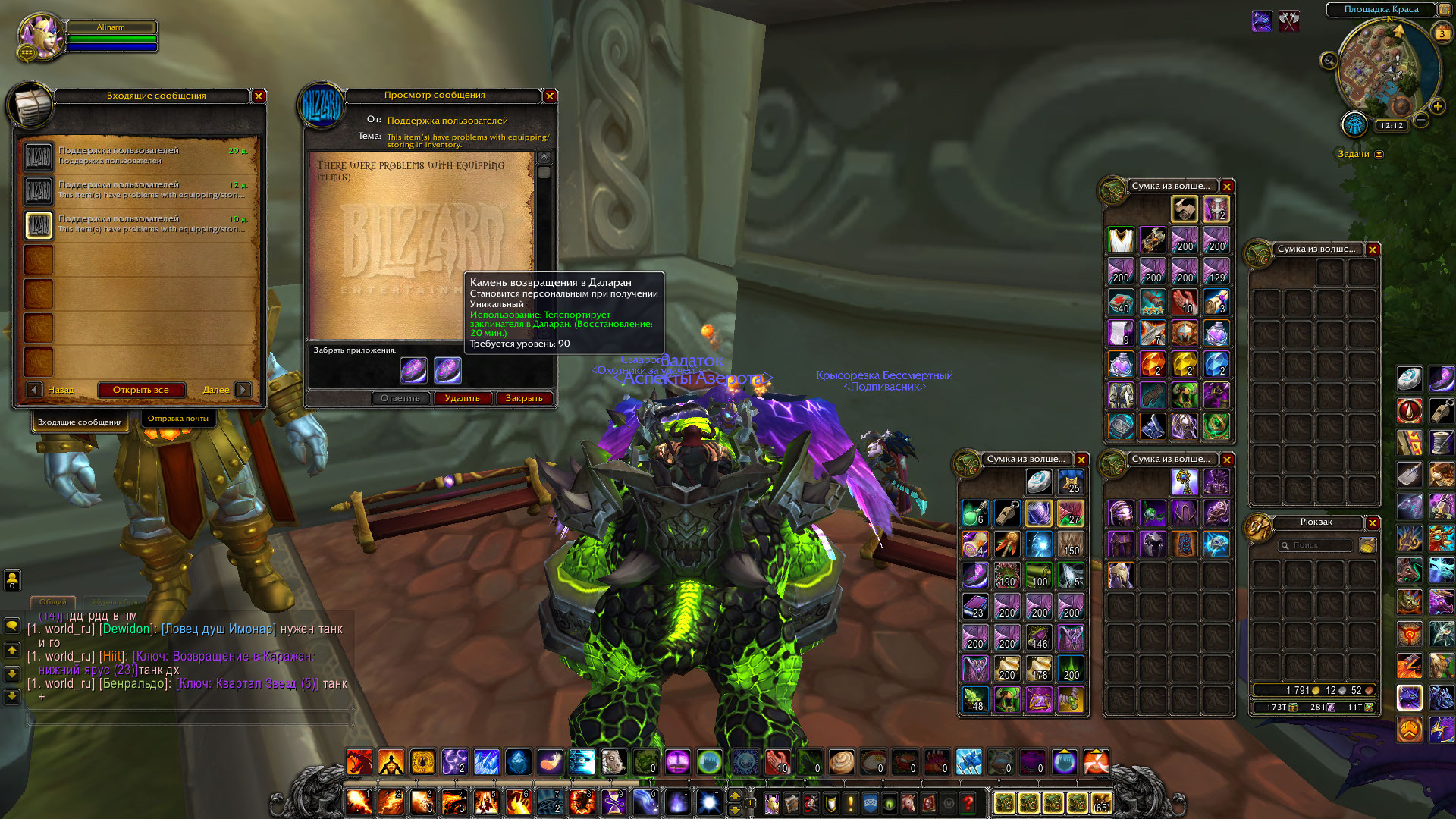 | Description | сумки сортируют с лево на право! пропадает вещи с сумок на почту! доска заданий в оплоте класс не работает % для выполнения заданий не повышаются задания! беру на расколотом острове на доске задания там нет предметов за выполнения их просто 1000 опыта! | ||||